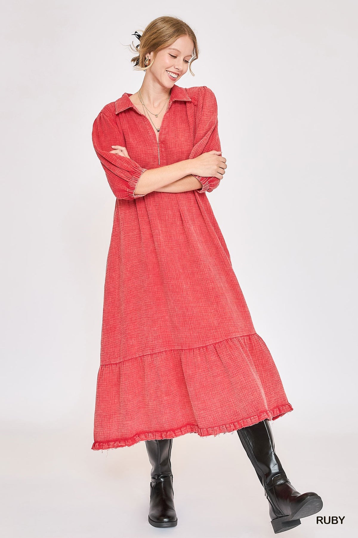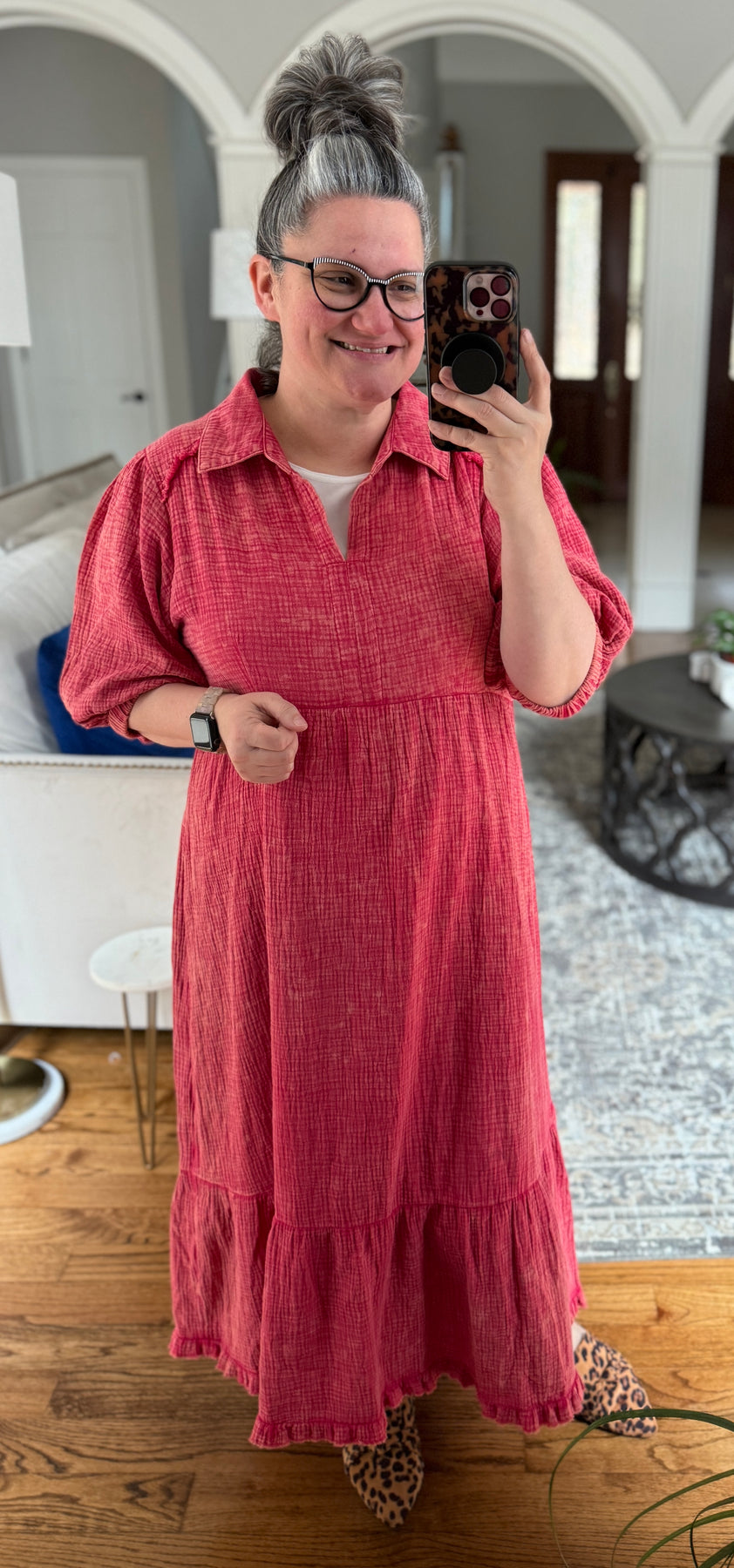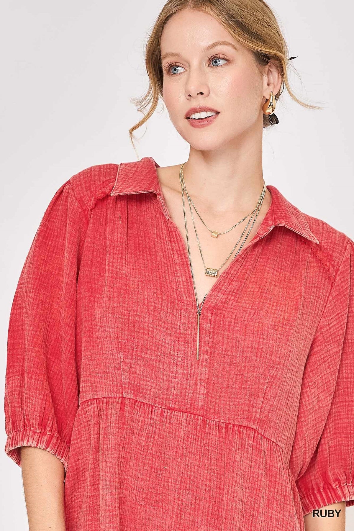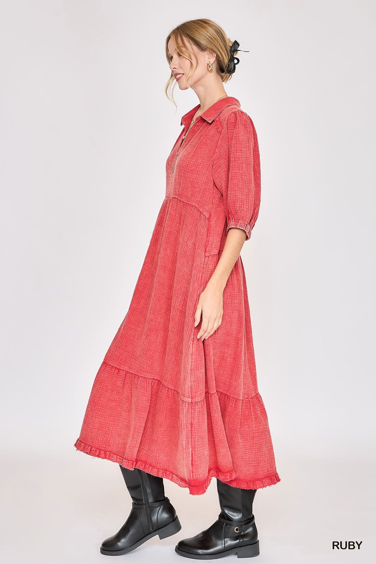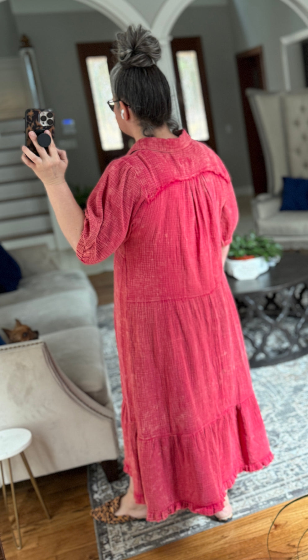 Mineral Washed cotton gauze dress, slight high low, frayed hem