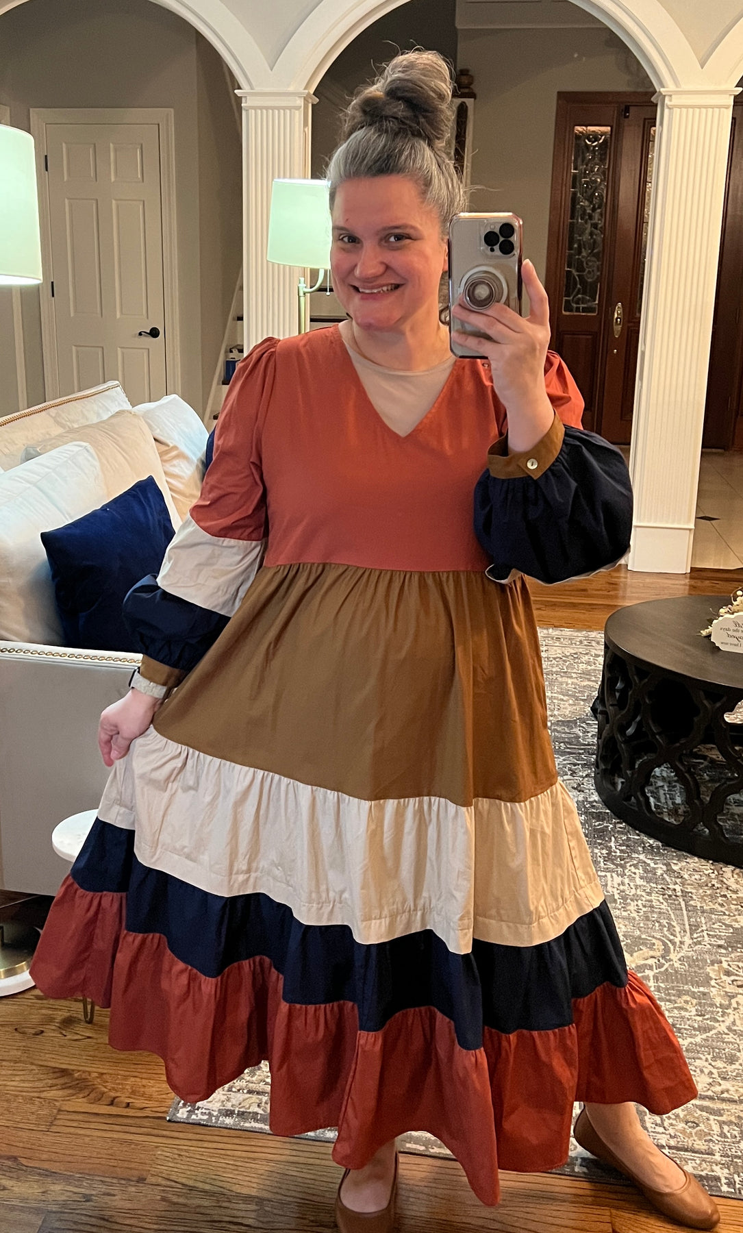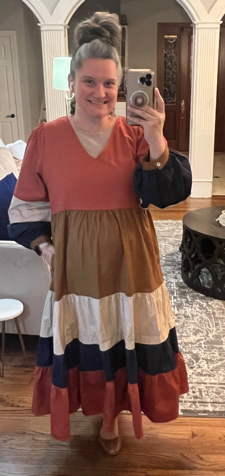 band cuffs, and tiered layer. - Non-sheer, lightweight. - Model is 5'10'' and is wearing a Small,