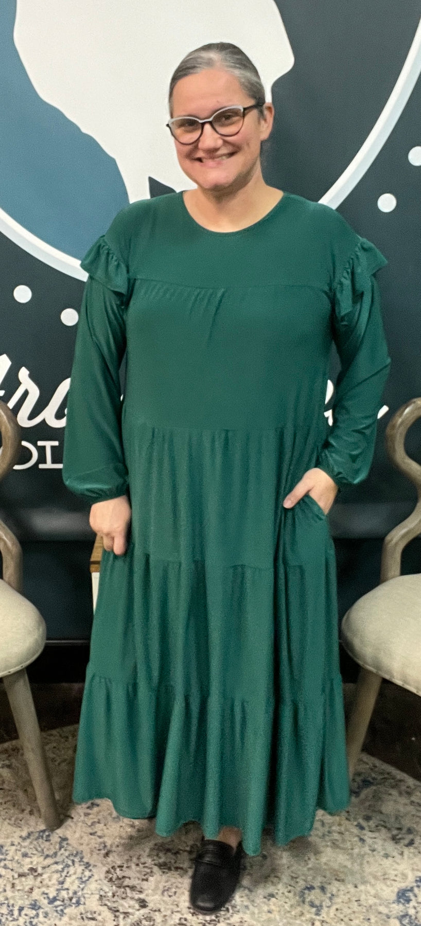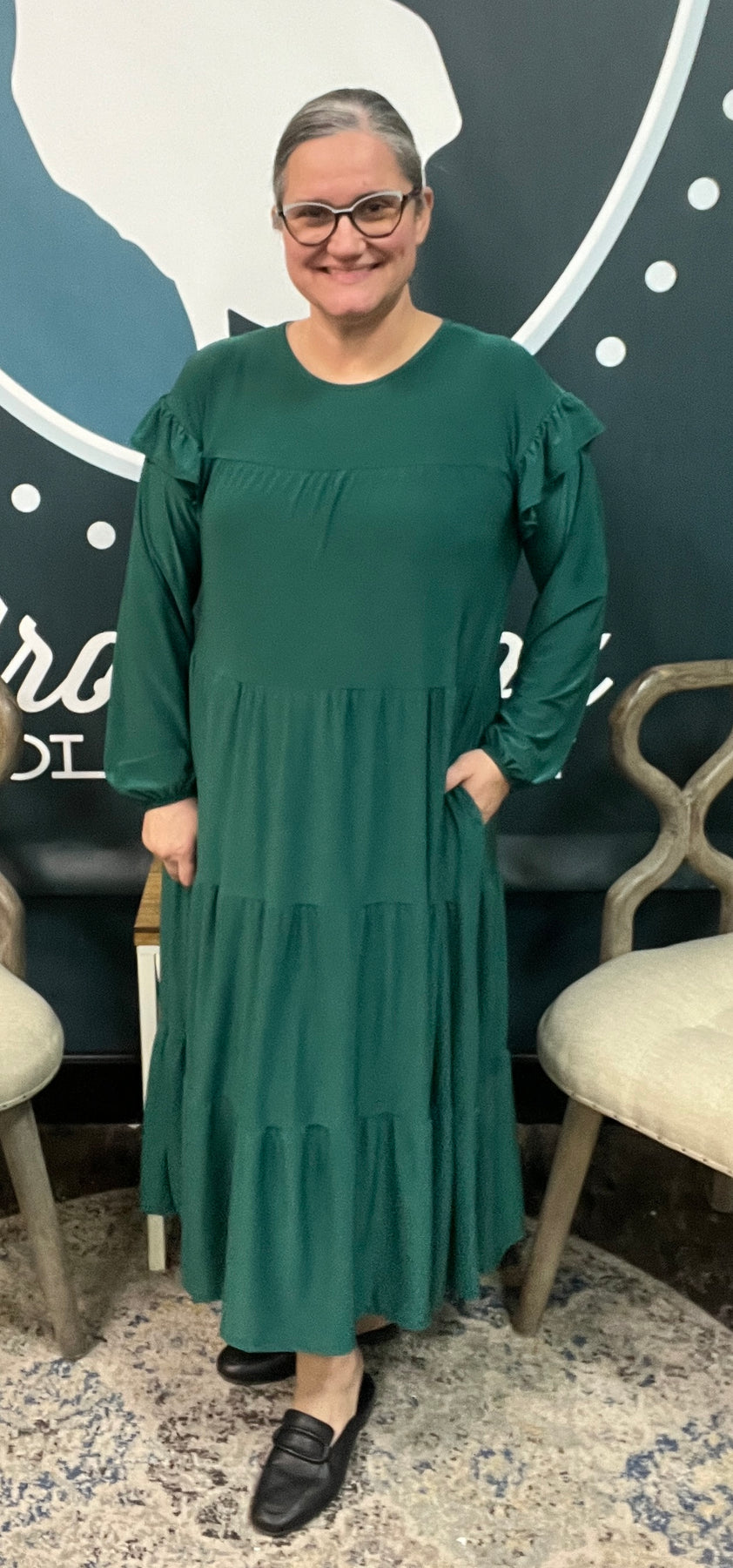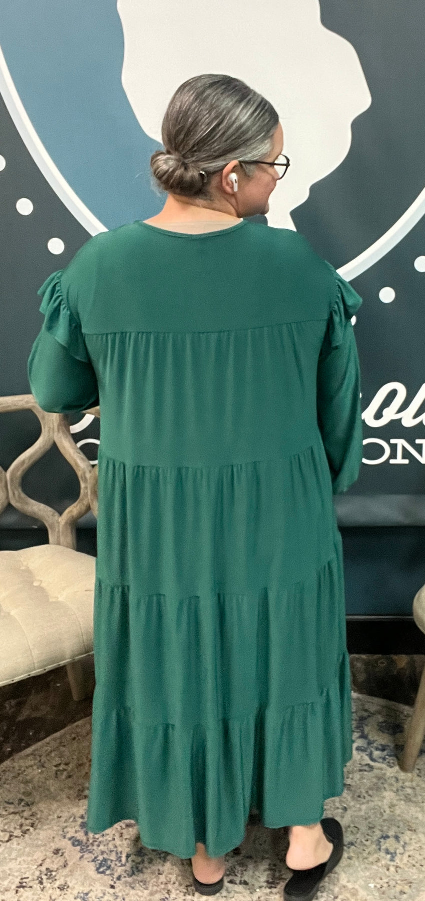 Heidi Ruffle Sleeve Dress ~ Hunter