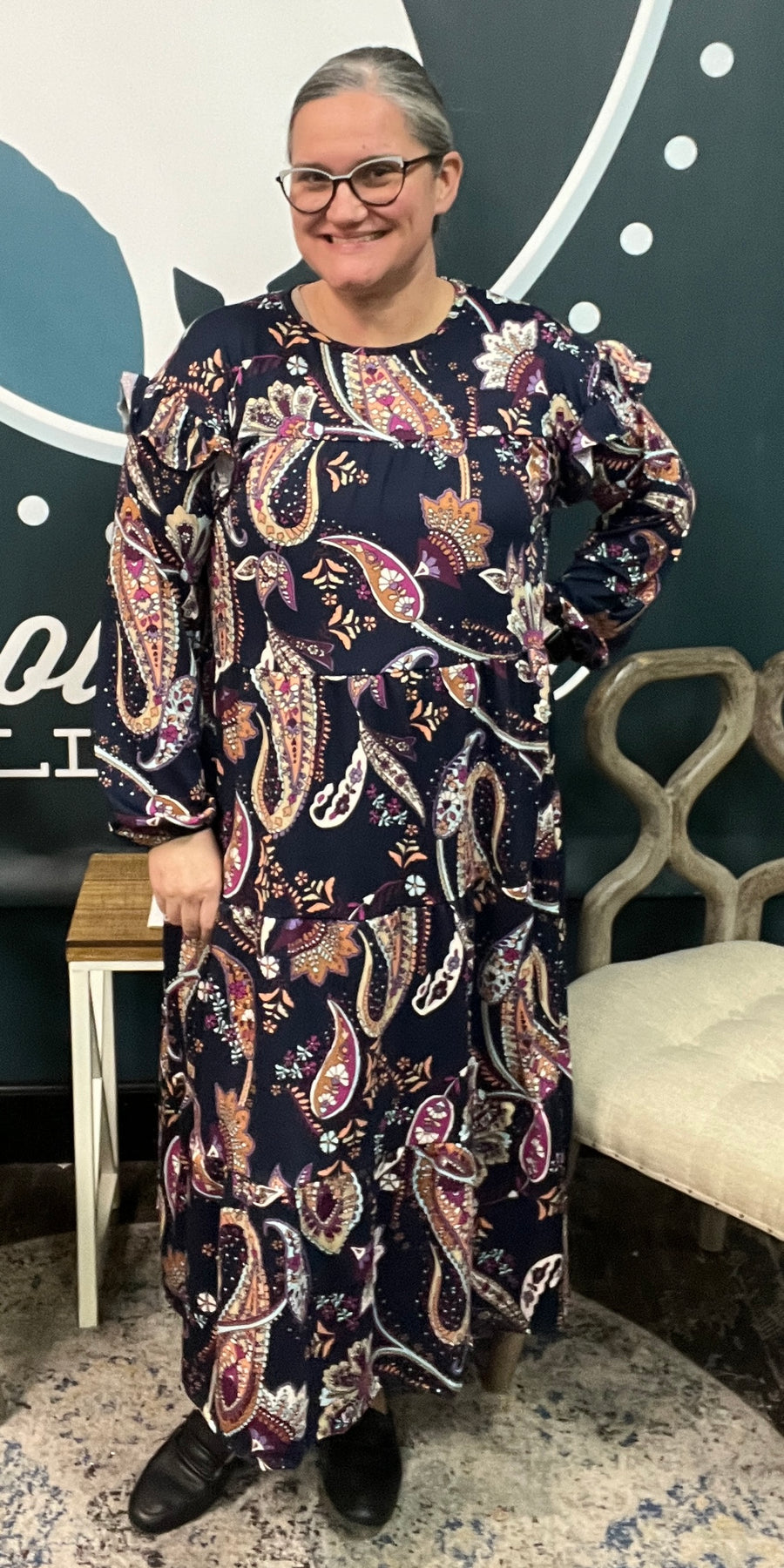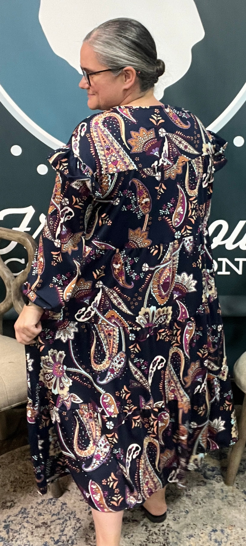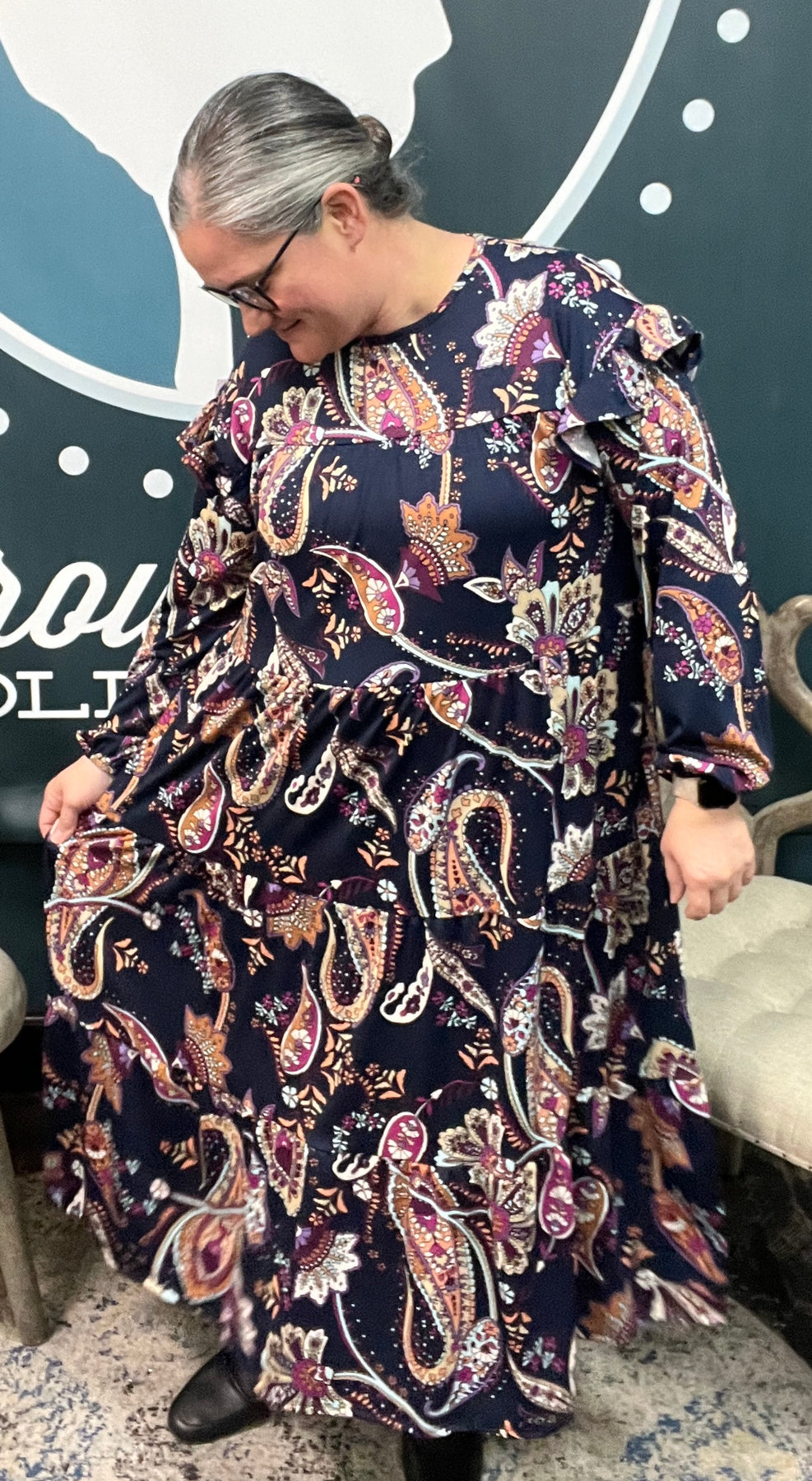 Heidi Ruffle Sleeve Dress ~ Navy Paisley