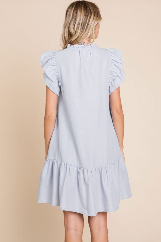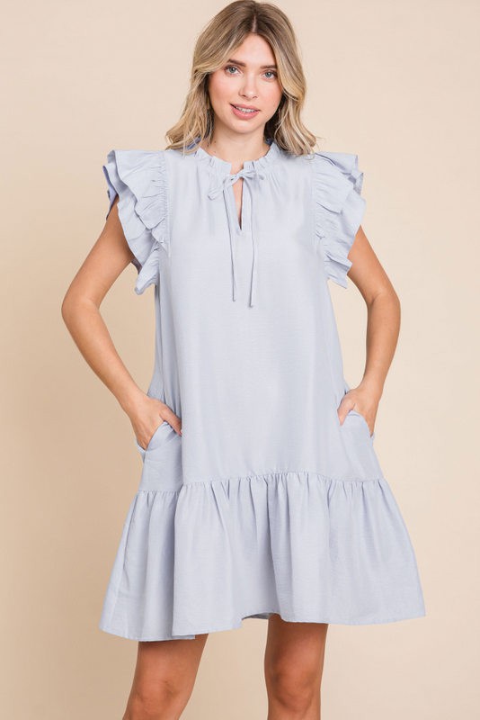 layer ruffled cap sleeves, and wide ruffled hemline. - non-sheer, lightweight.
