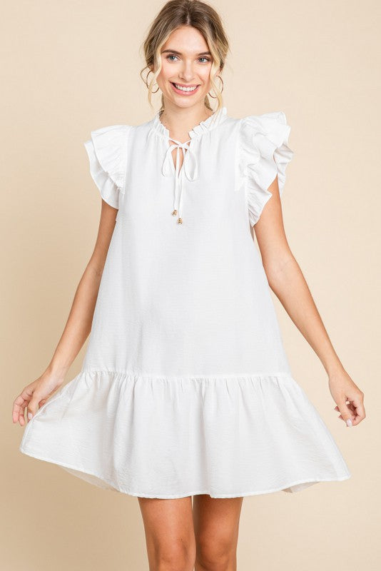 layer ruffled cap sleeves, and wide ruffled hemline. - non-sheer, lightweight.