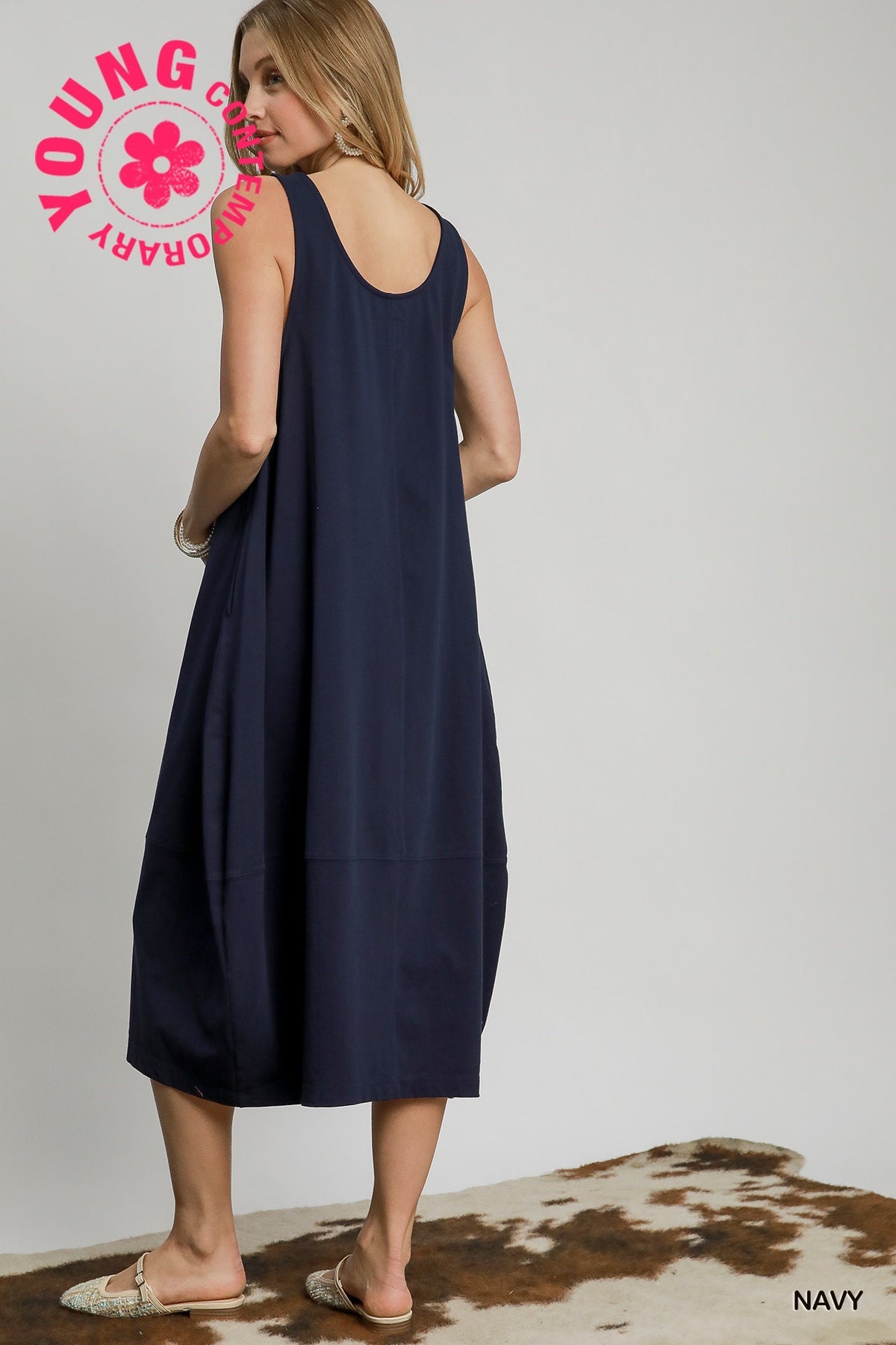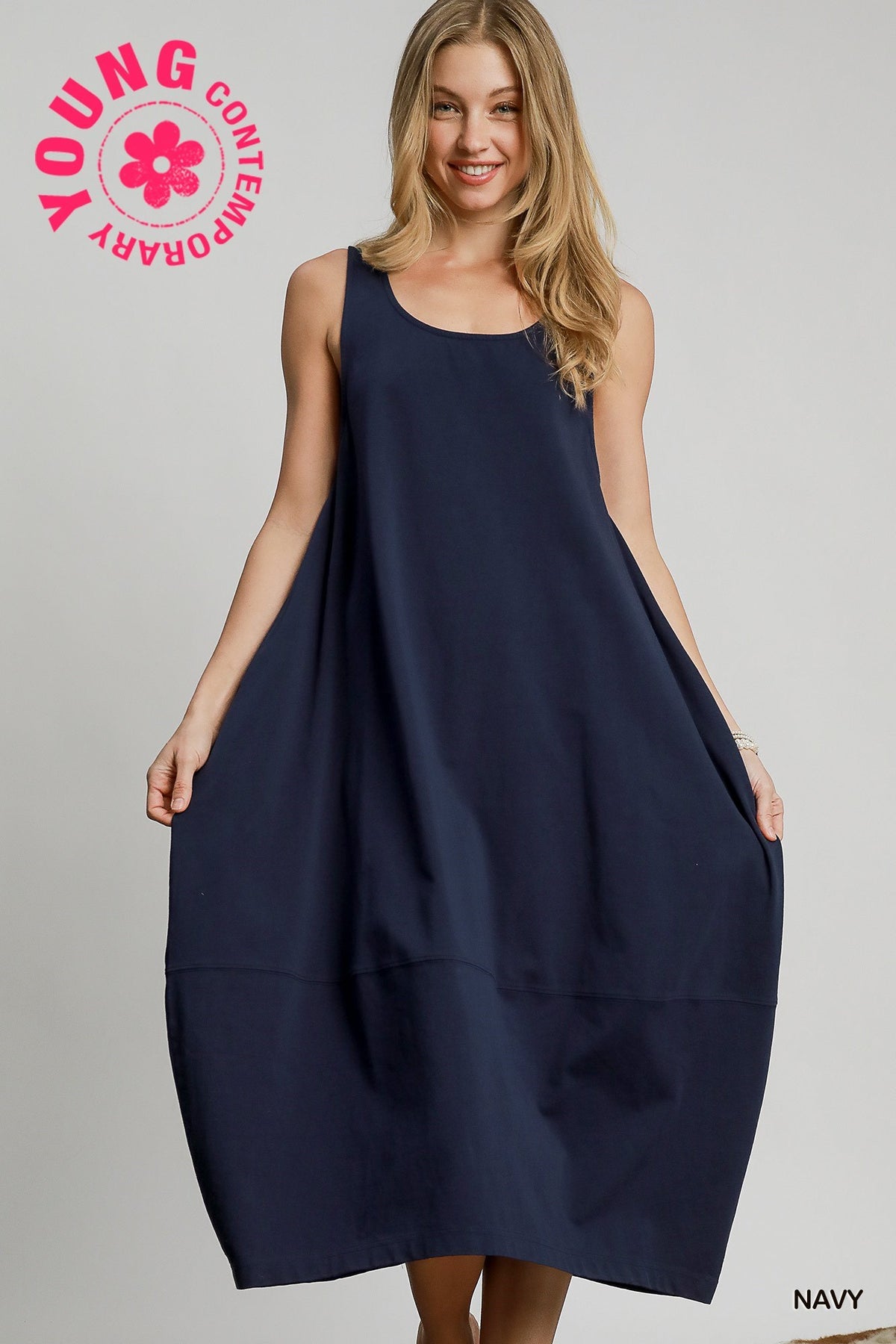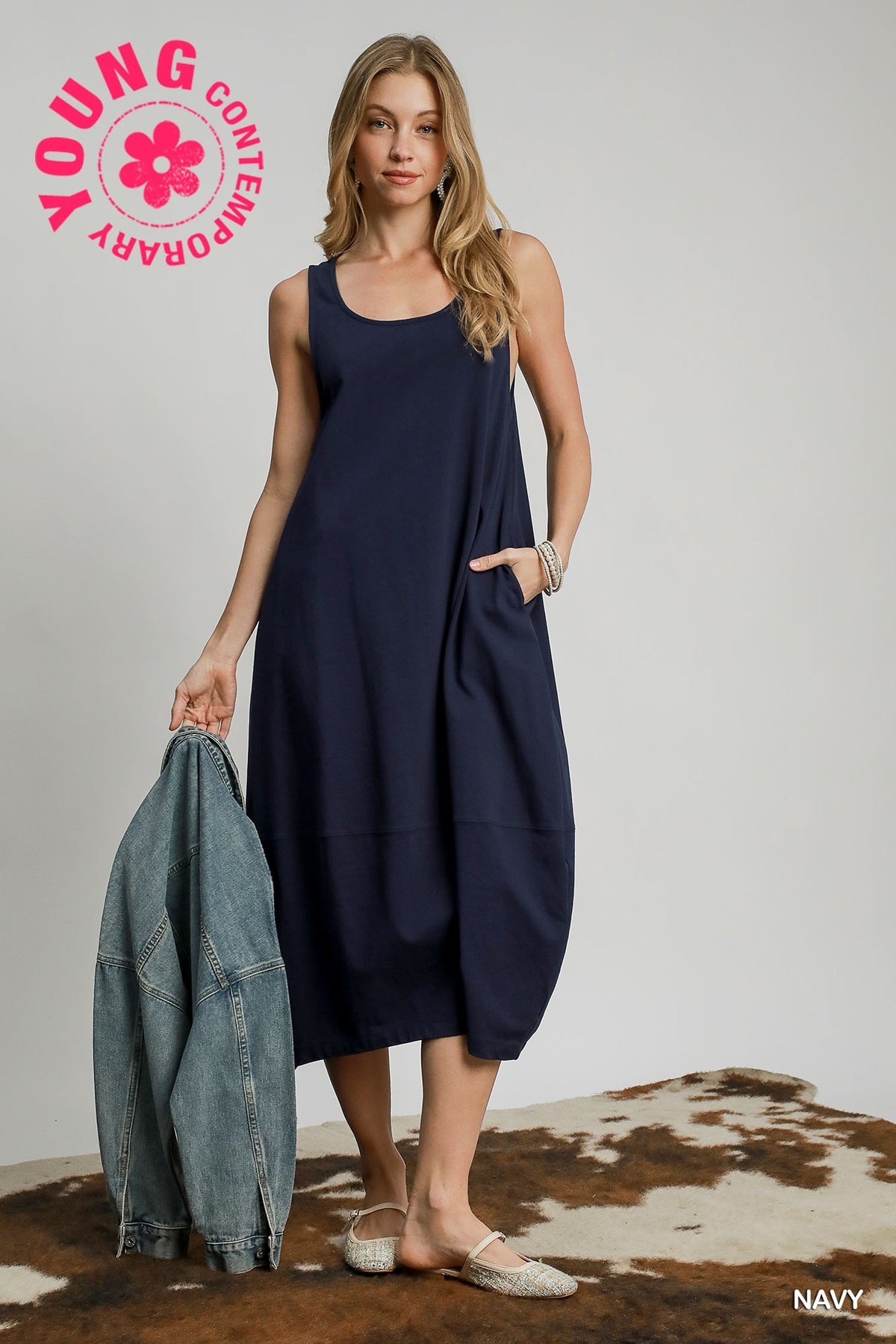 Bubble silhouette jumper featuring wide stripes, side pockets and comfy fit