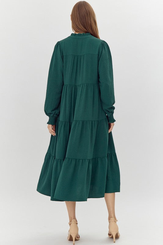 long poet sleeves, and tiered layer. - Non-sheer, lightweight.