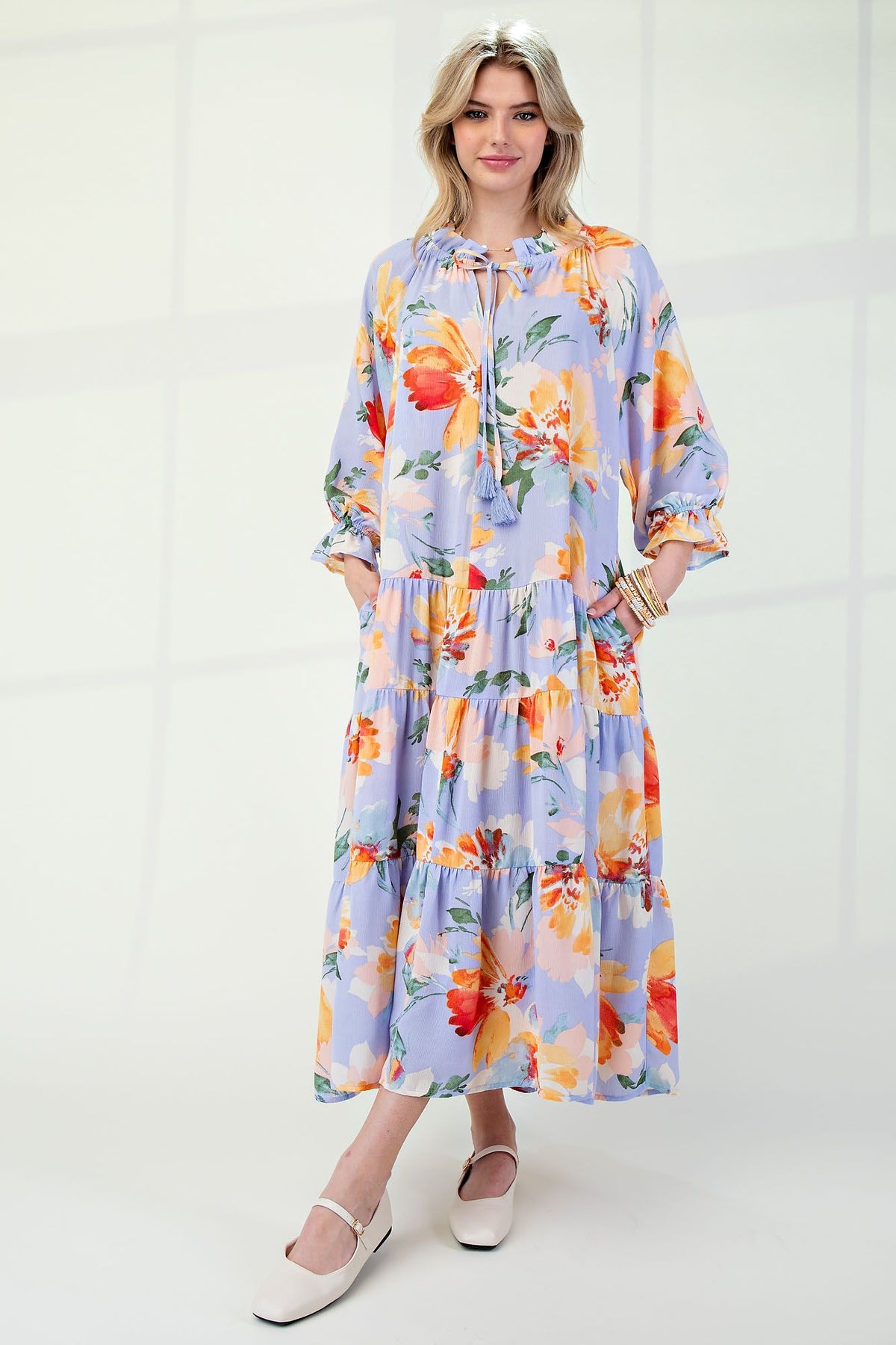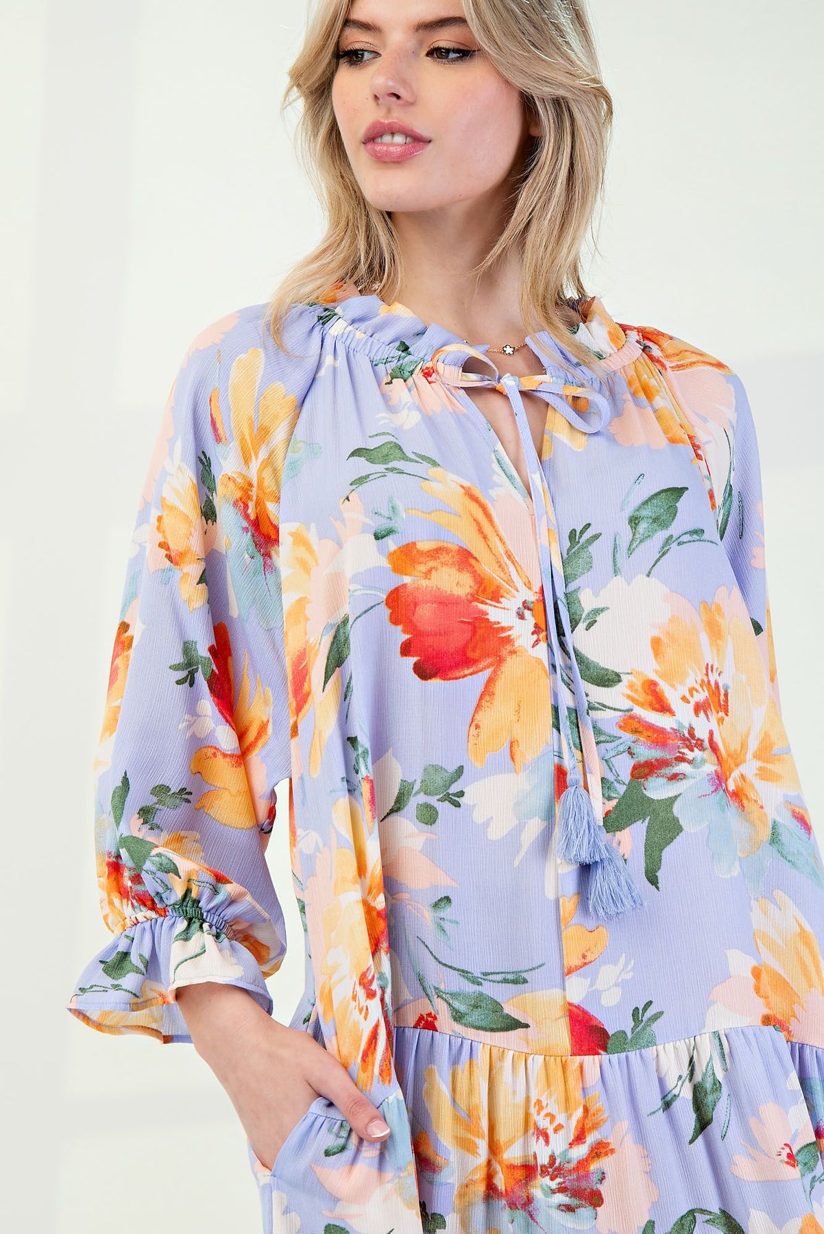 Ruffled V Cut Neckline with Adjustable Tassel Tie