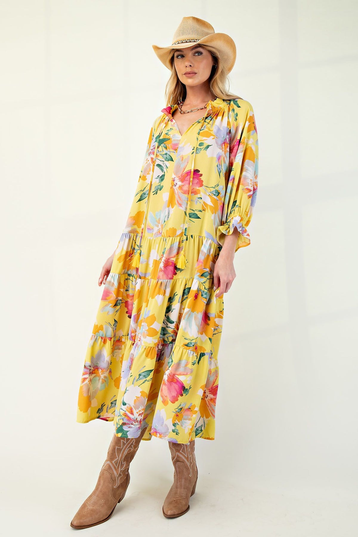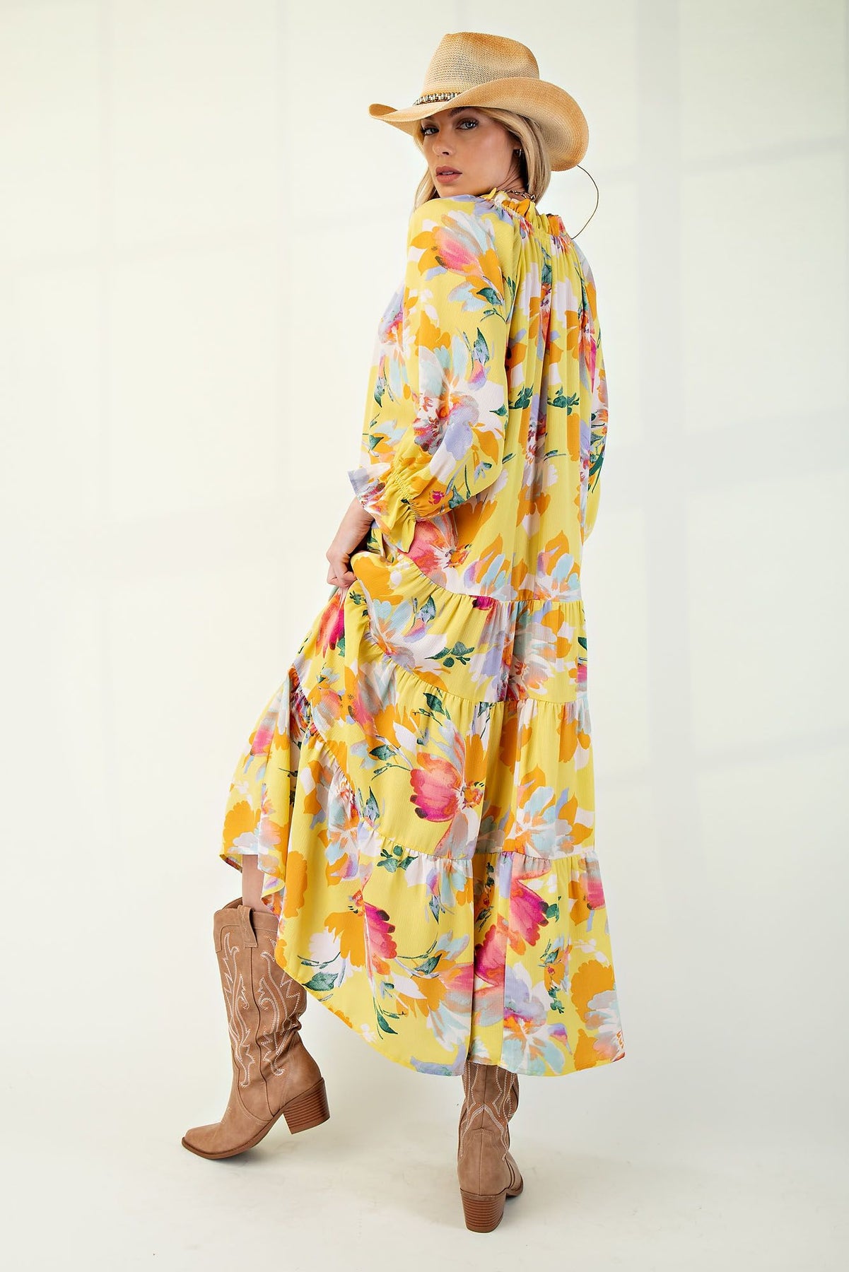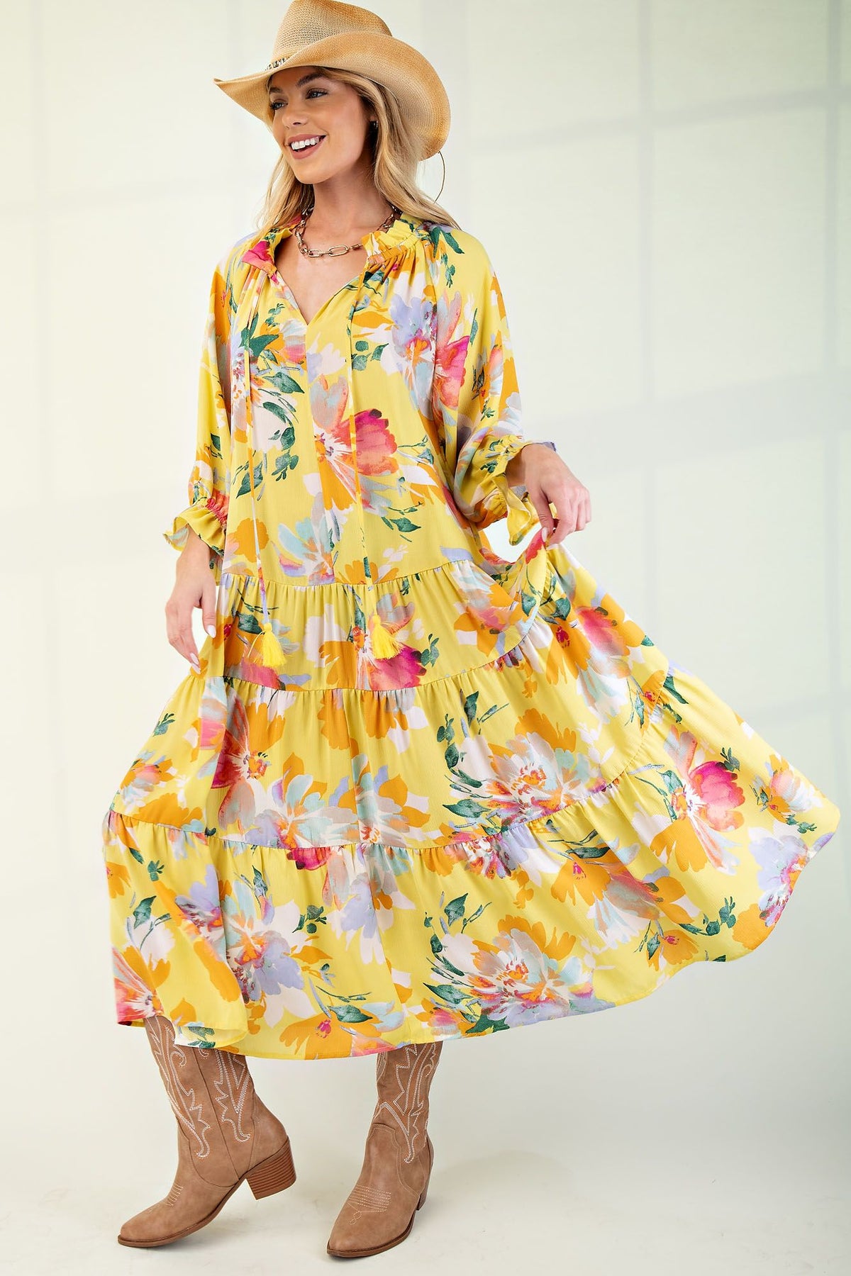 Ruffled V Cut Neckline with Adjustable Tassel Tie