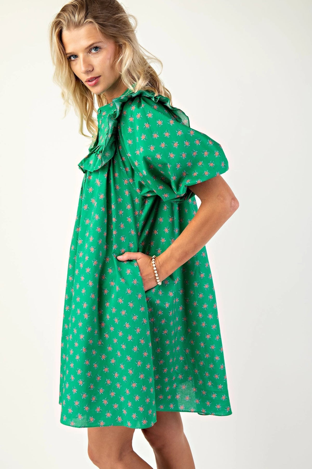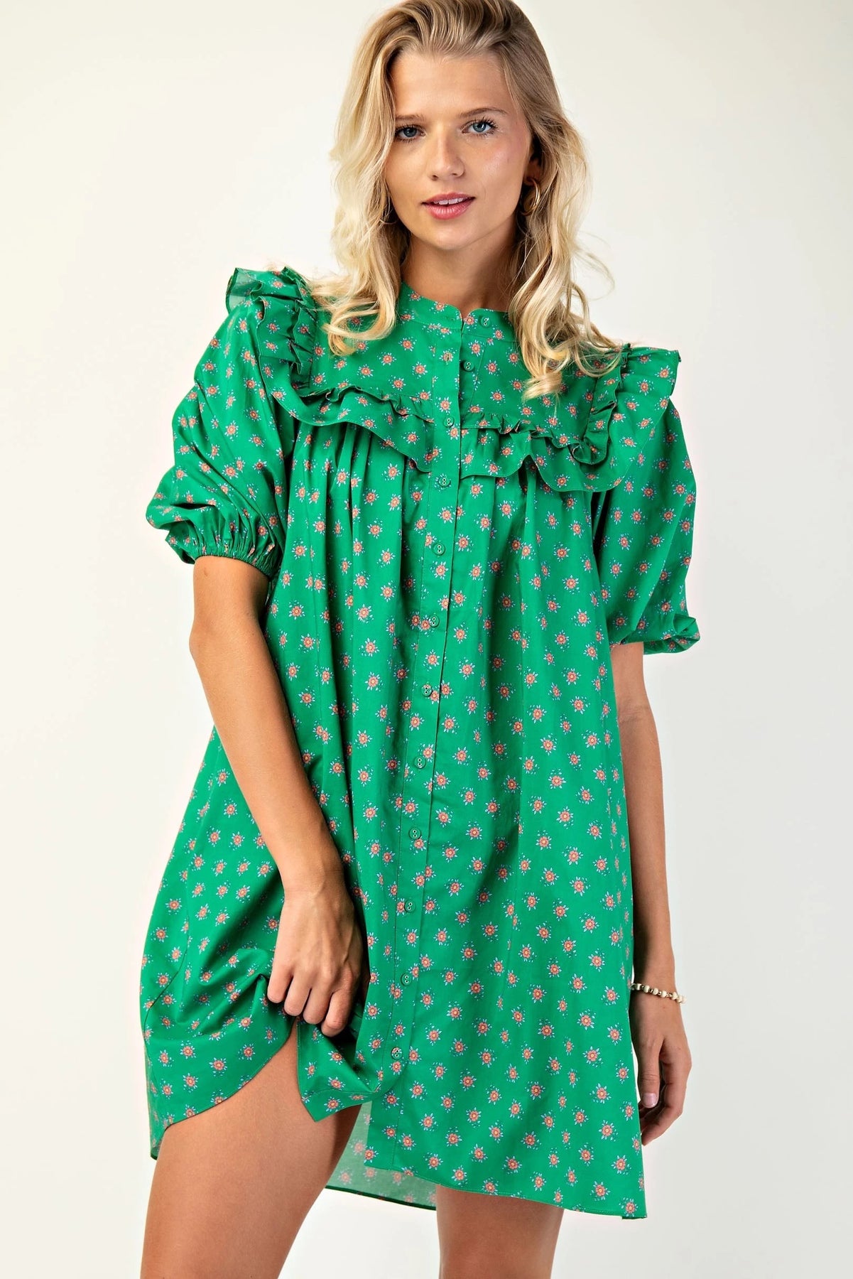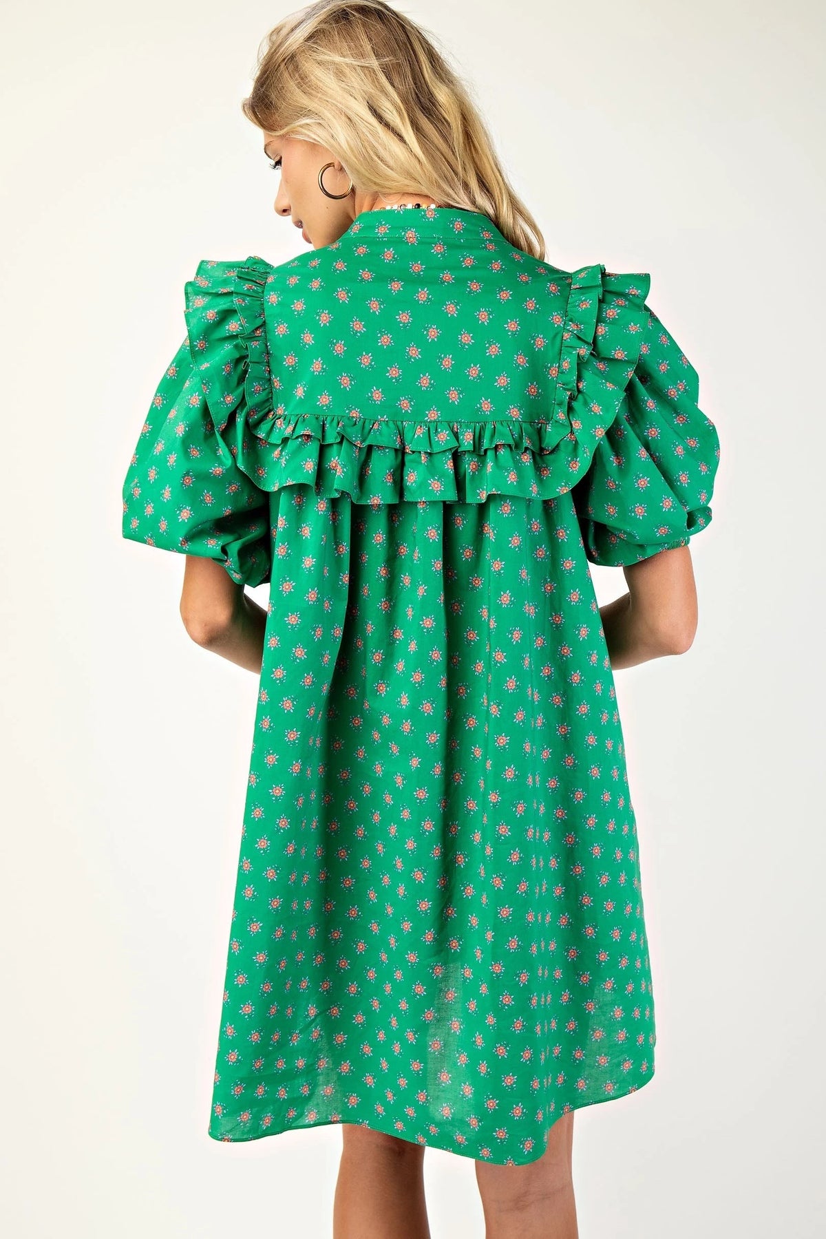 Puff sleeve Tunic/Dress with mandarin necklin and ruffle details
