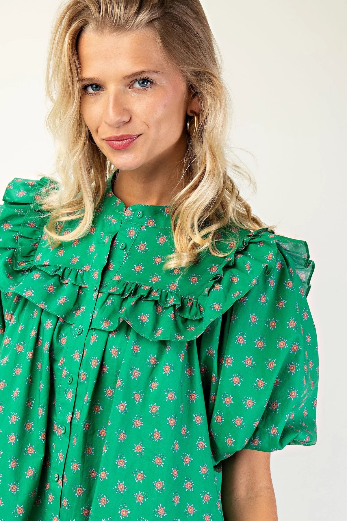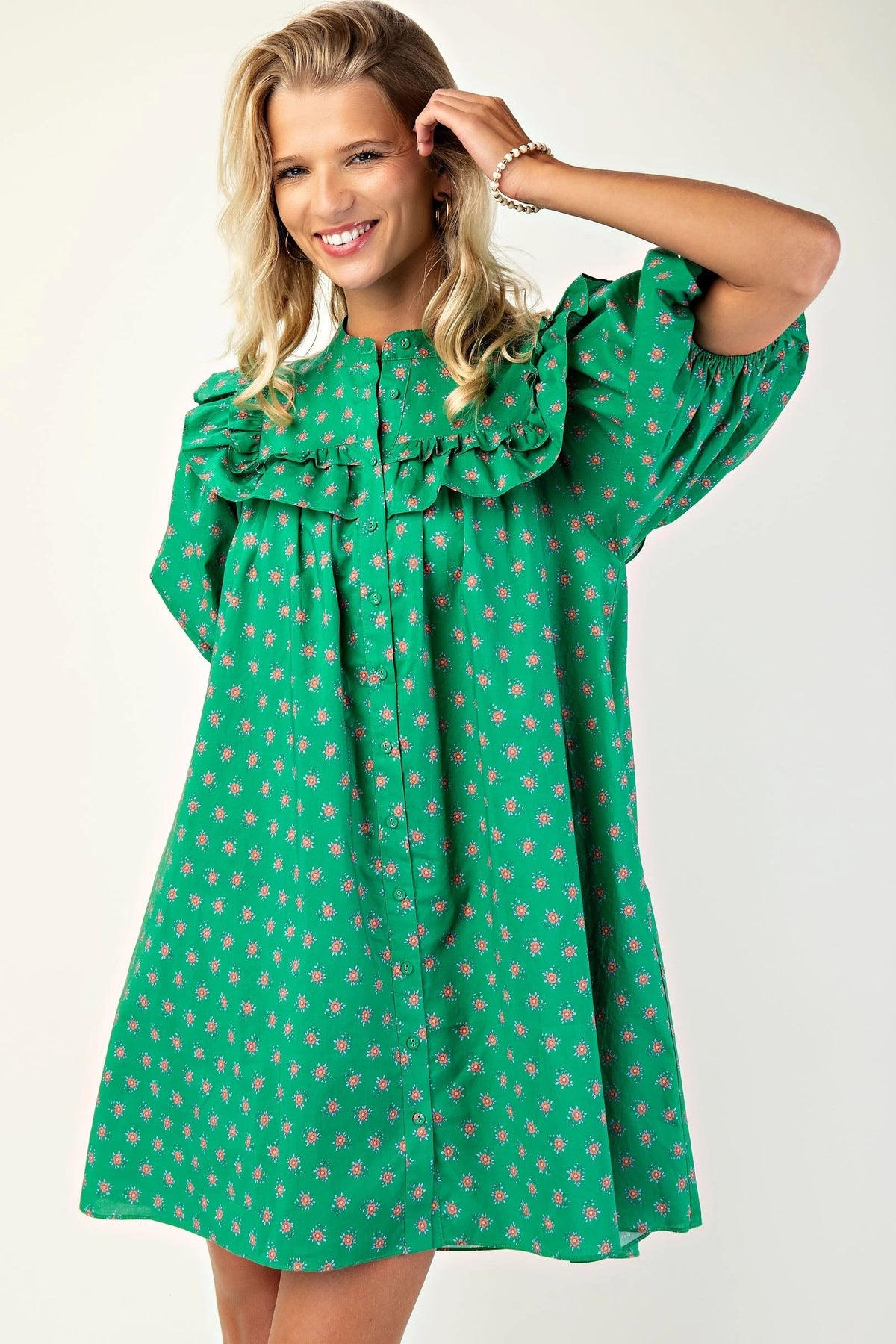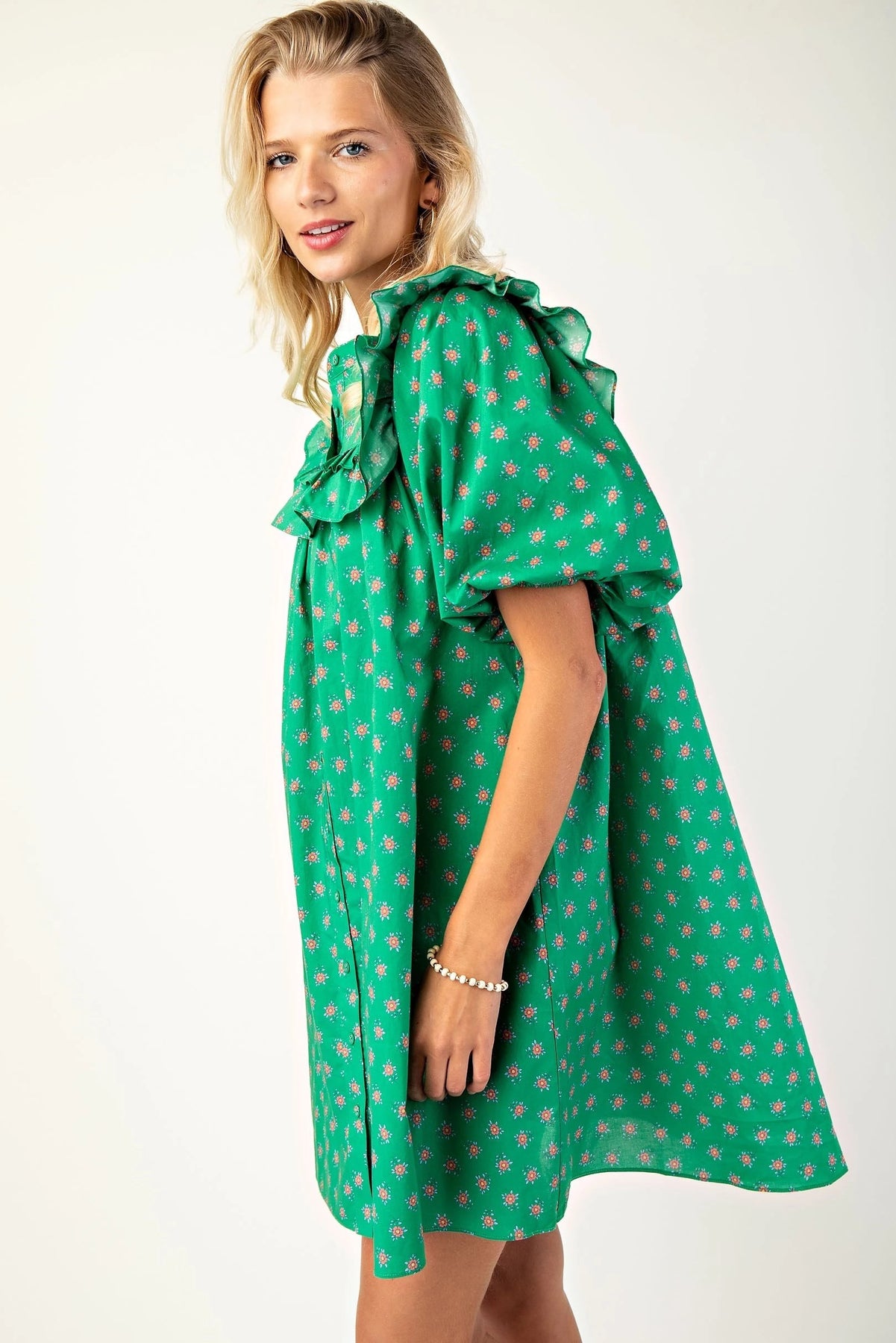 Puff sleeve Tunic/Dress with mandarin necklin and ruffle details