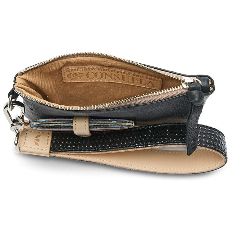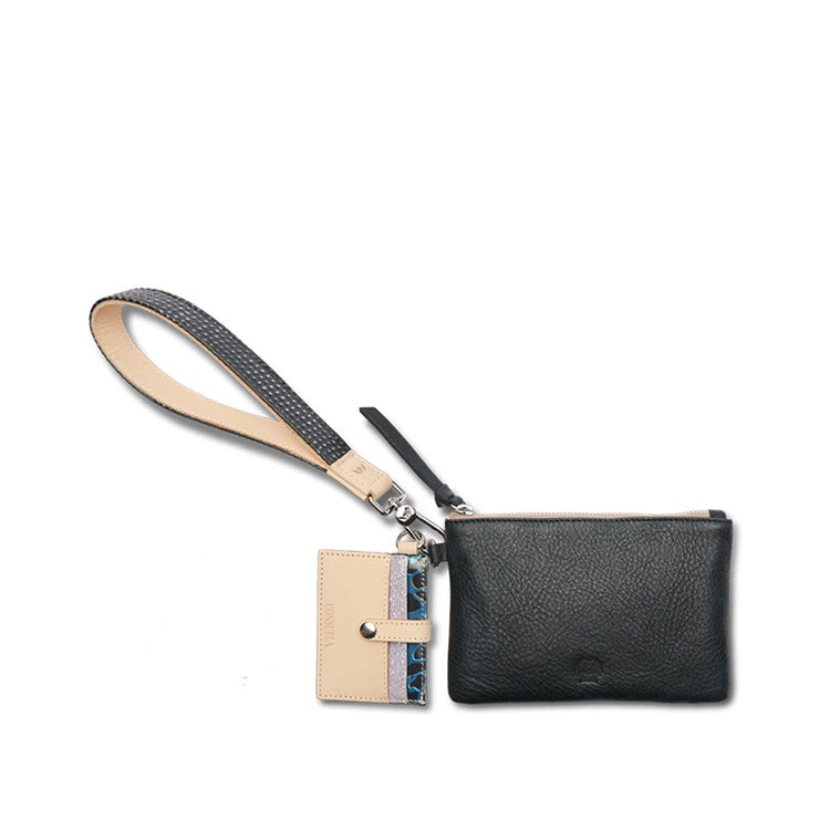 The Combi, a combination of on-the-go accessories, is a new way to carry your keys, cards, and the small stuff together or separately. This leather wristlet wallet includes a pocket pouch, secure card slot wallet and fits comfortably around your wrist  - ready for your next journey.
