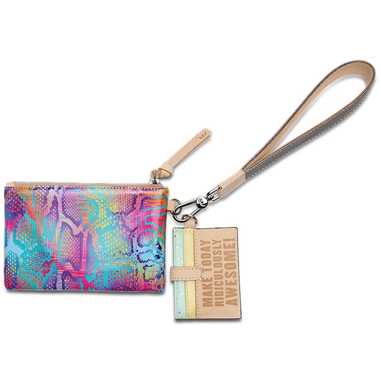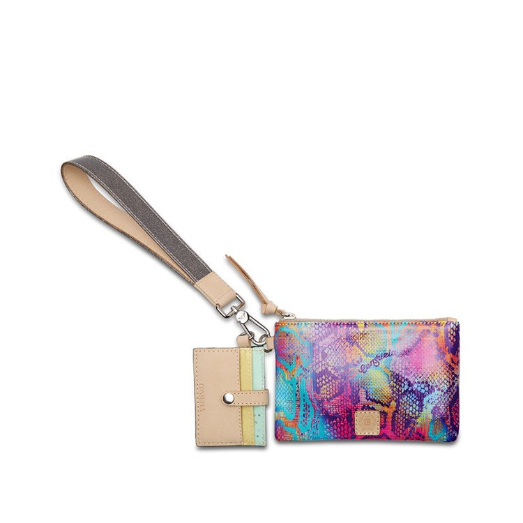 The Combi, a combination of on-the-go accessories, is a new way to carry your keys, cards, and the small stuff together or separately. This colorful wristlet wallet includes a pocket pouch, secure card slot wallet and fits comfortably around your wrist - ready for your next journey.