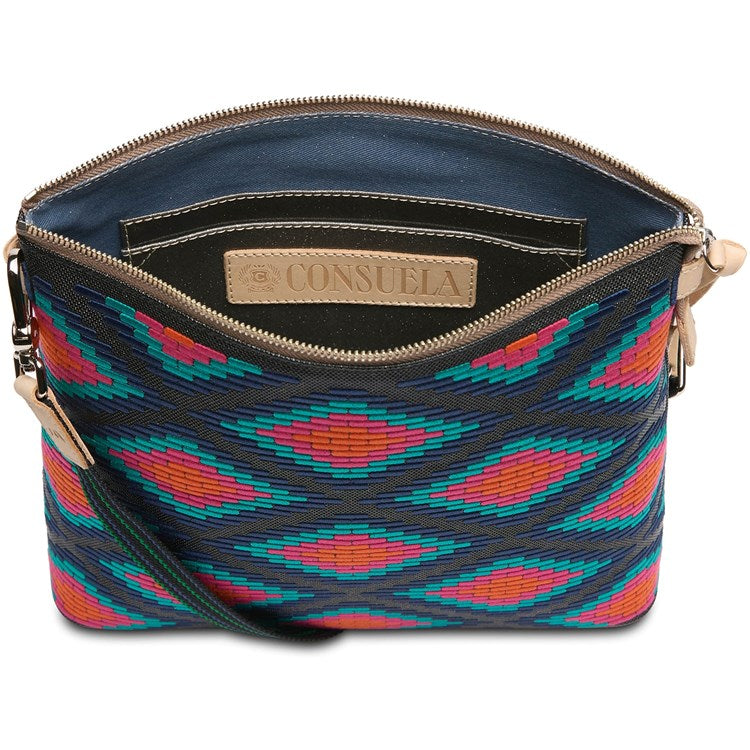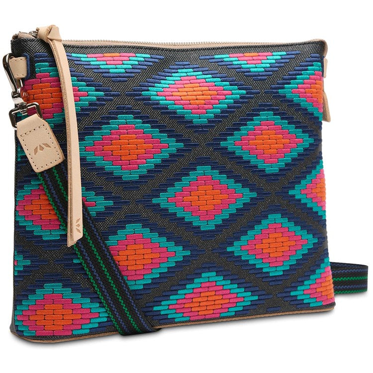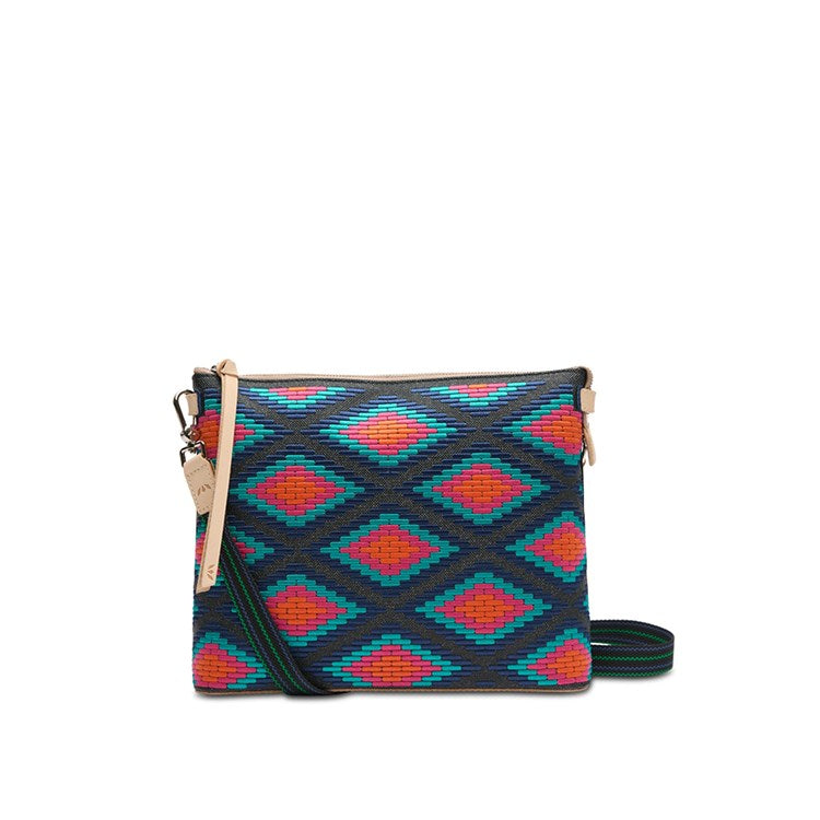 This embroidered crossbody bag is ready to take on the day with an adjustable strap and two interior pockets. Crafted with a roomy open interior, the Downtown Crossbody can carry the essentials and more.