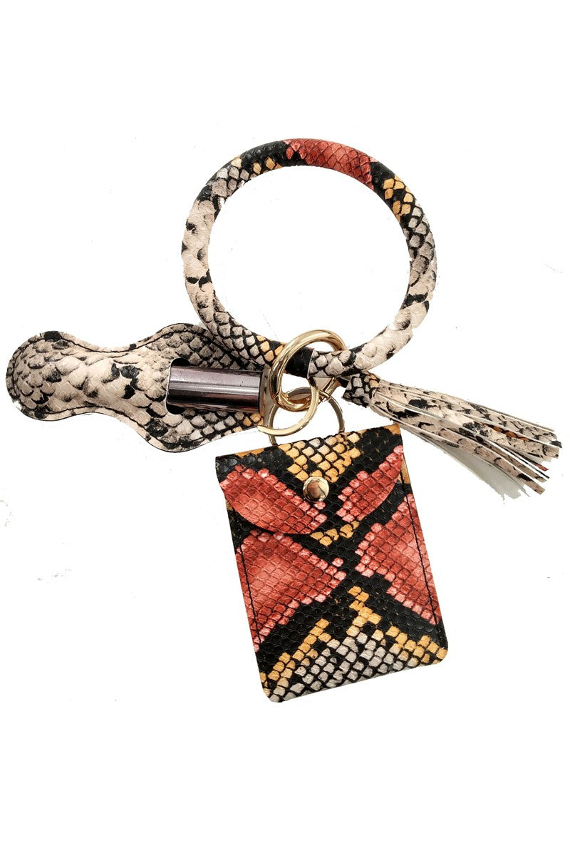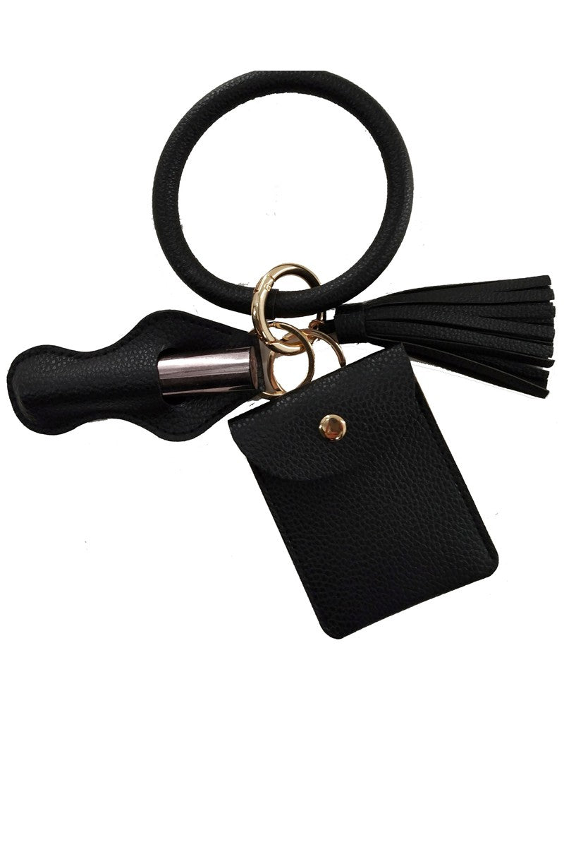 Bracelet keychain with chapstick holder and card holder attached.