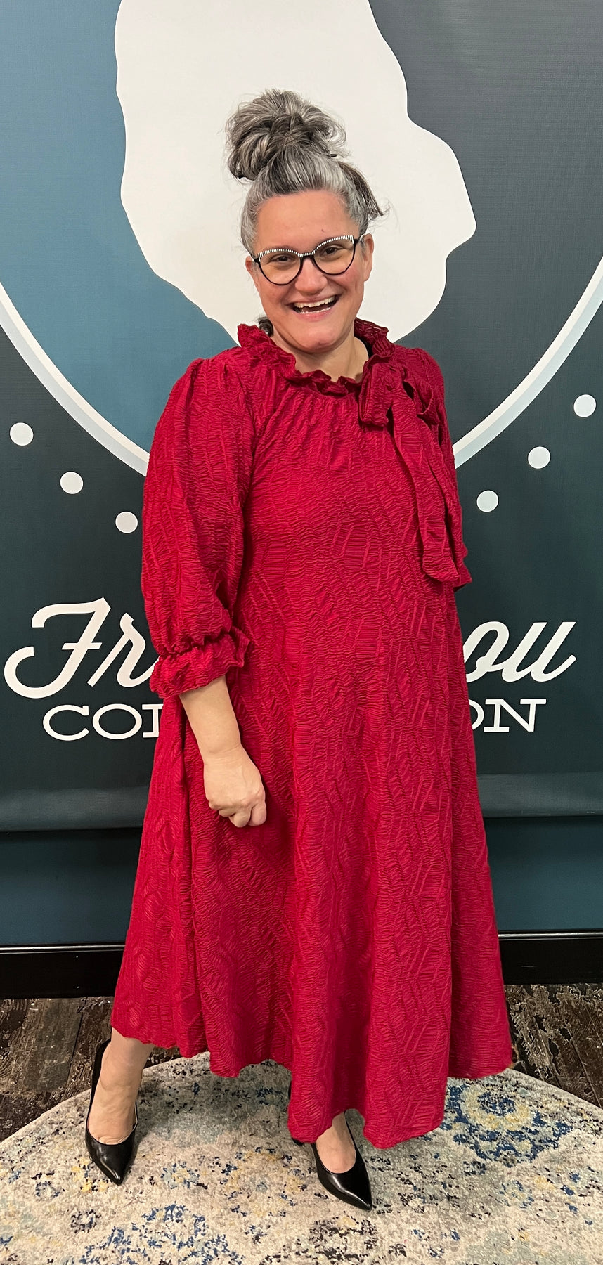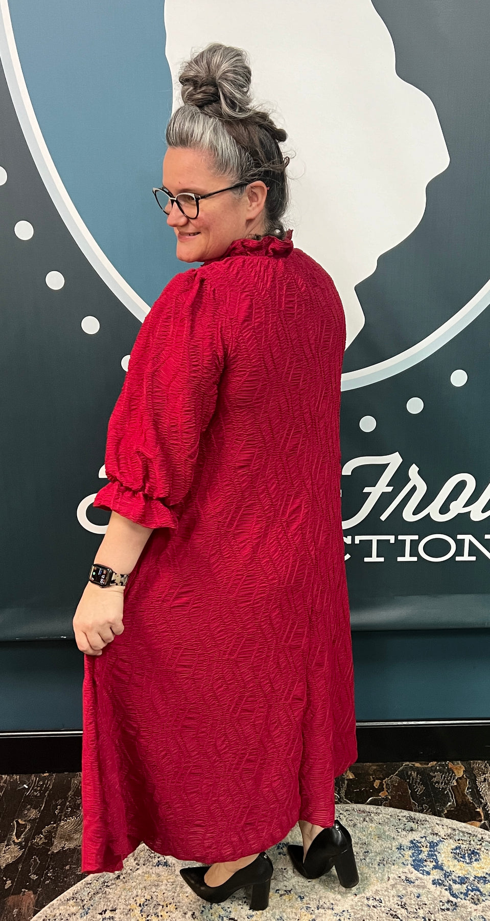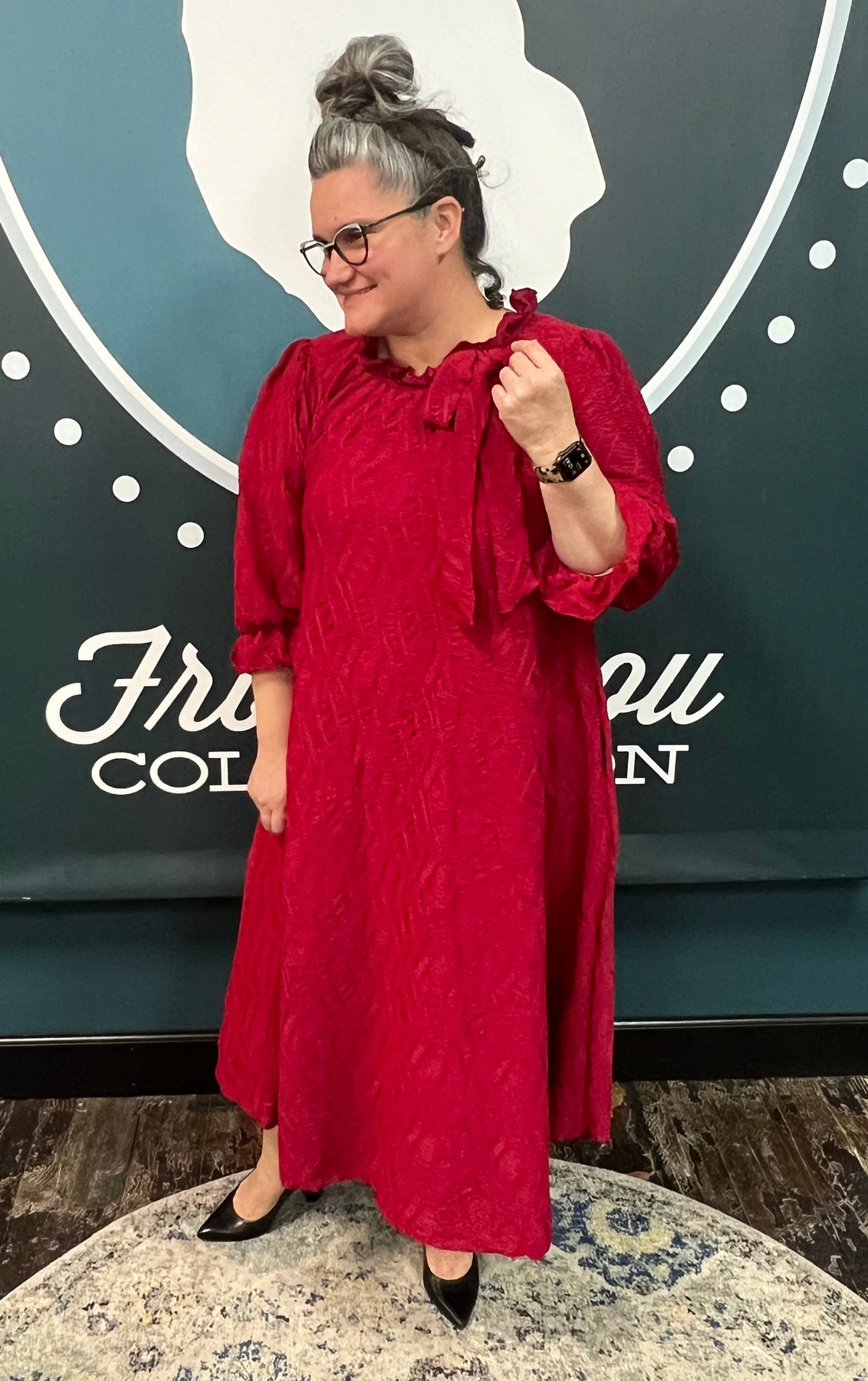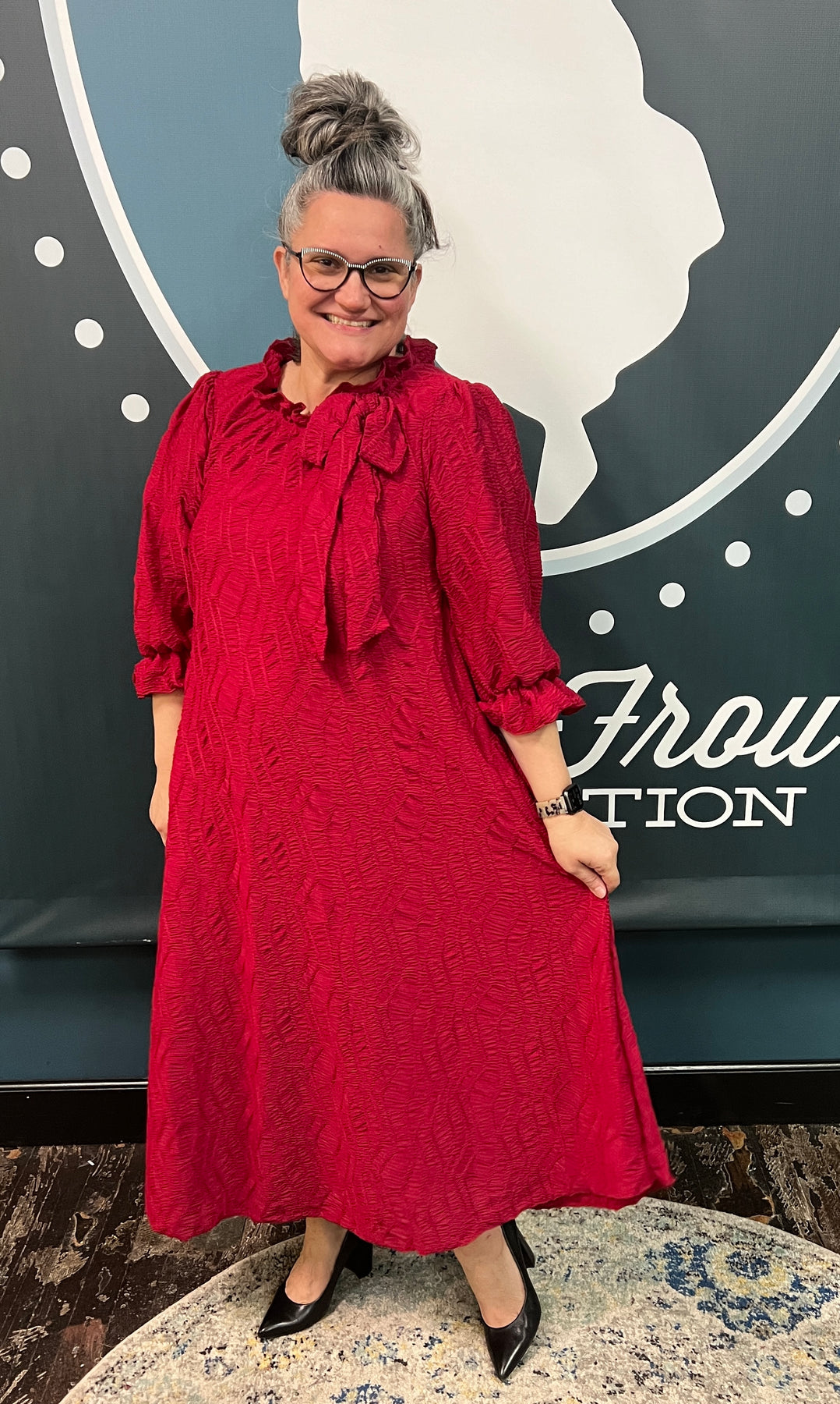 Our Graceful dress in cranberry is an exclusive color in this beautiful style!