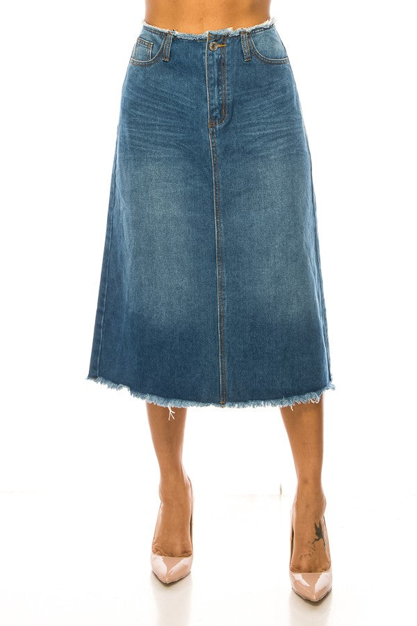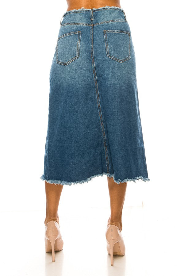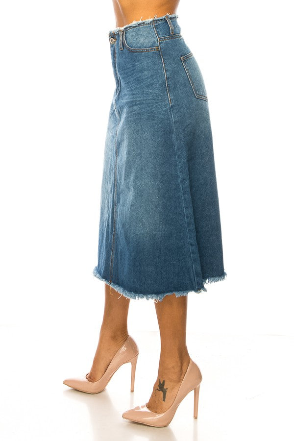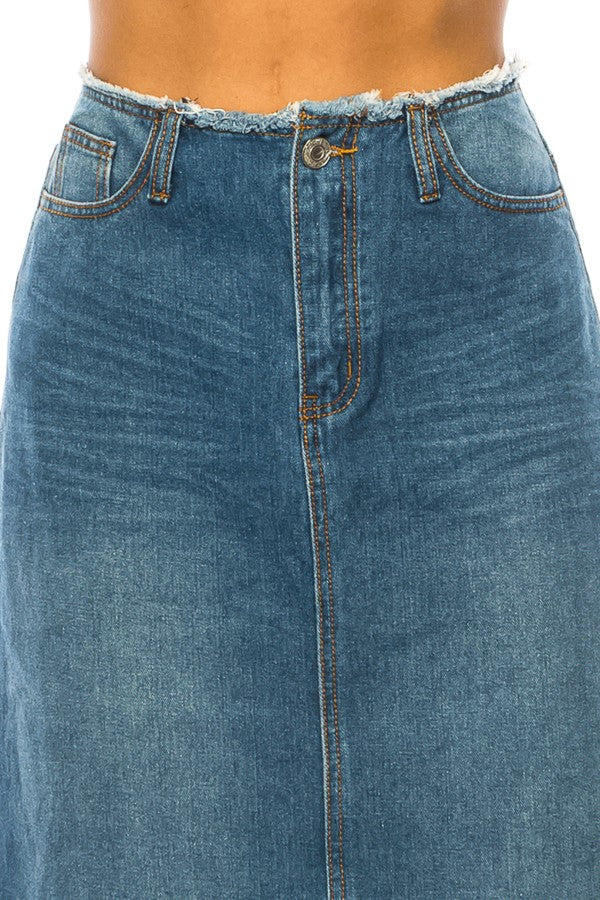 Indigo Frayed Hem Denim Skirt