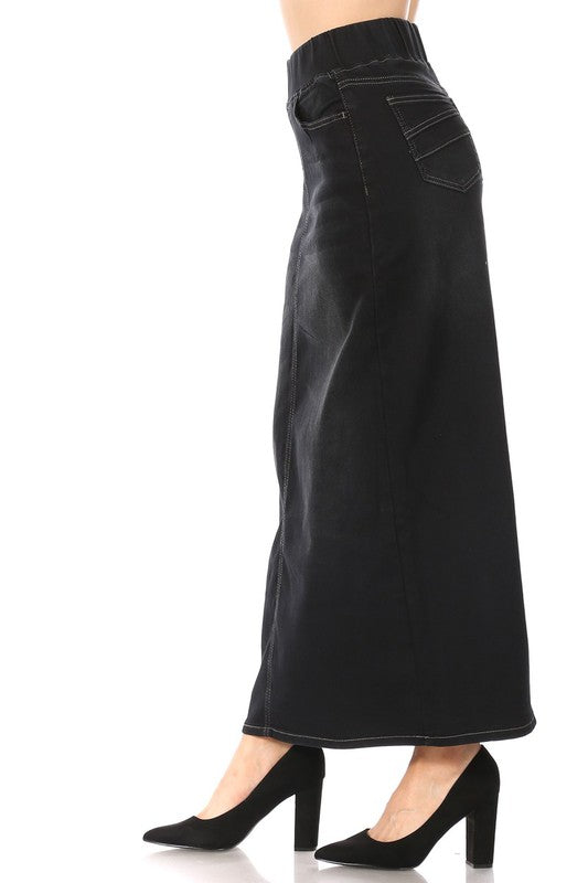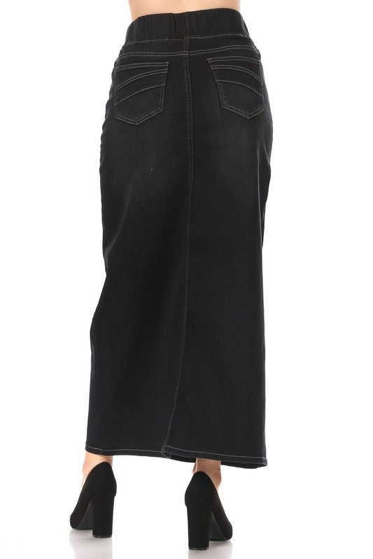Simply The Best ~ Black Wash Long Denim Skirt