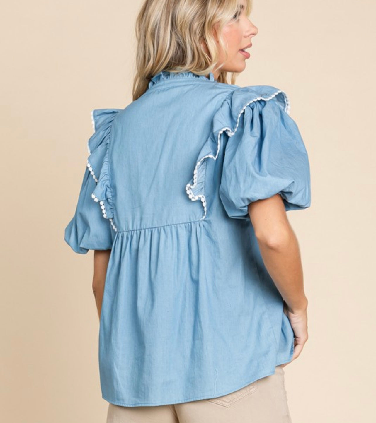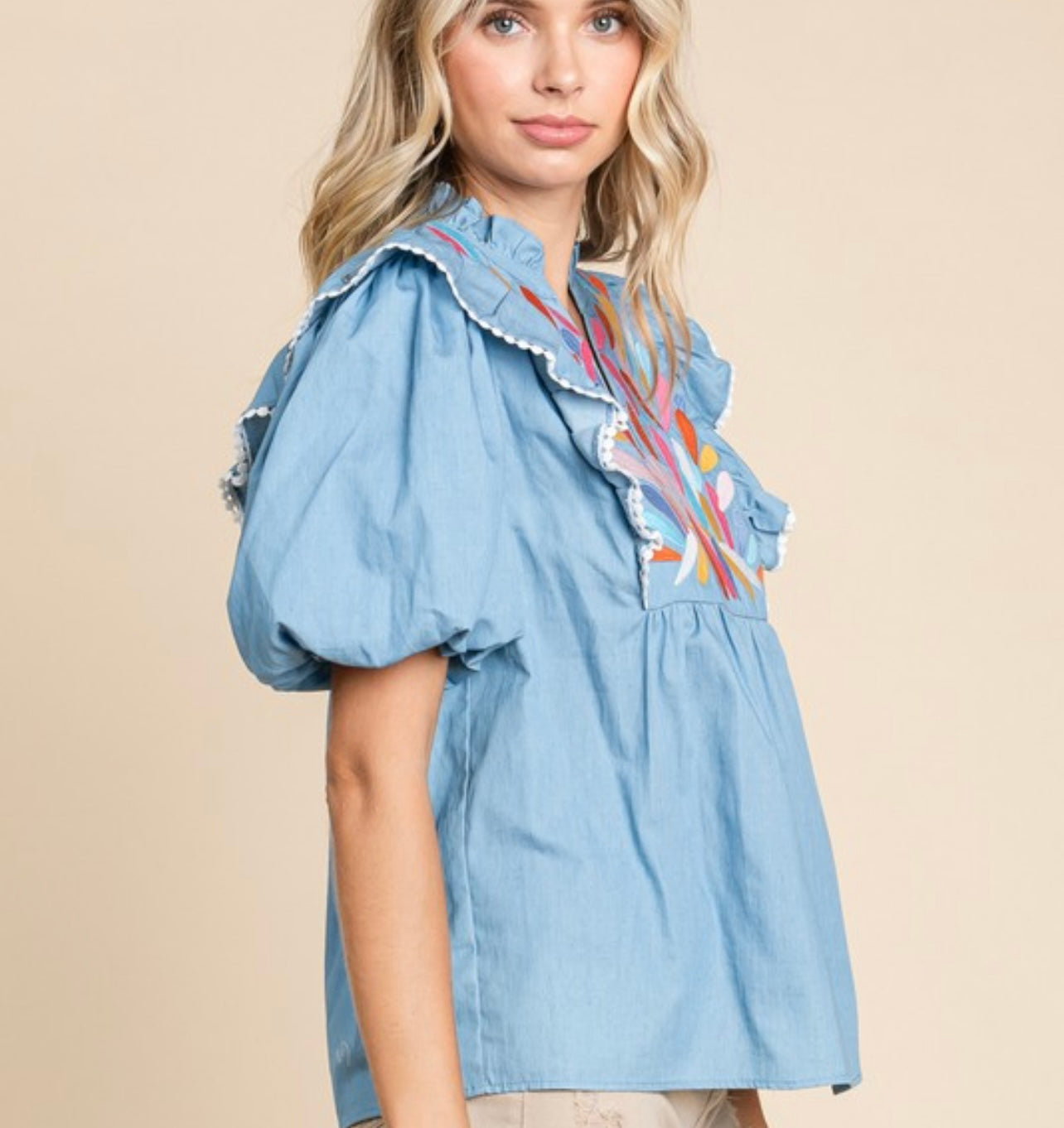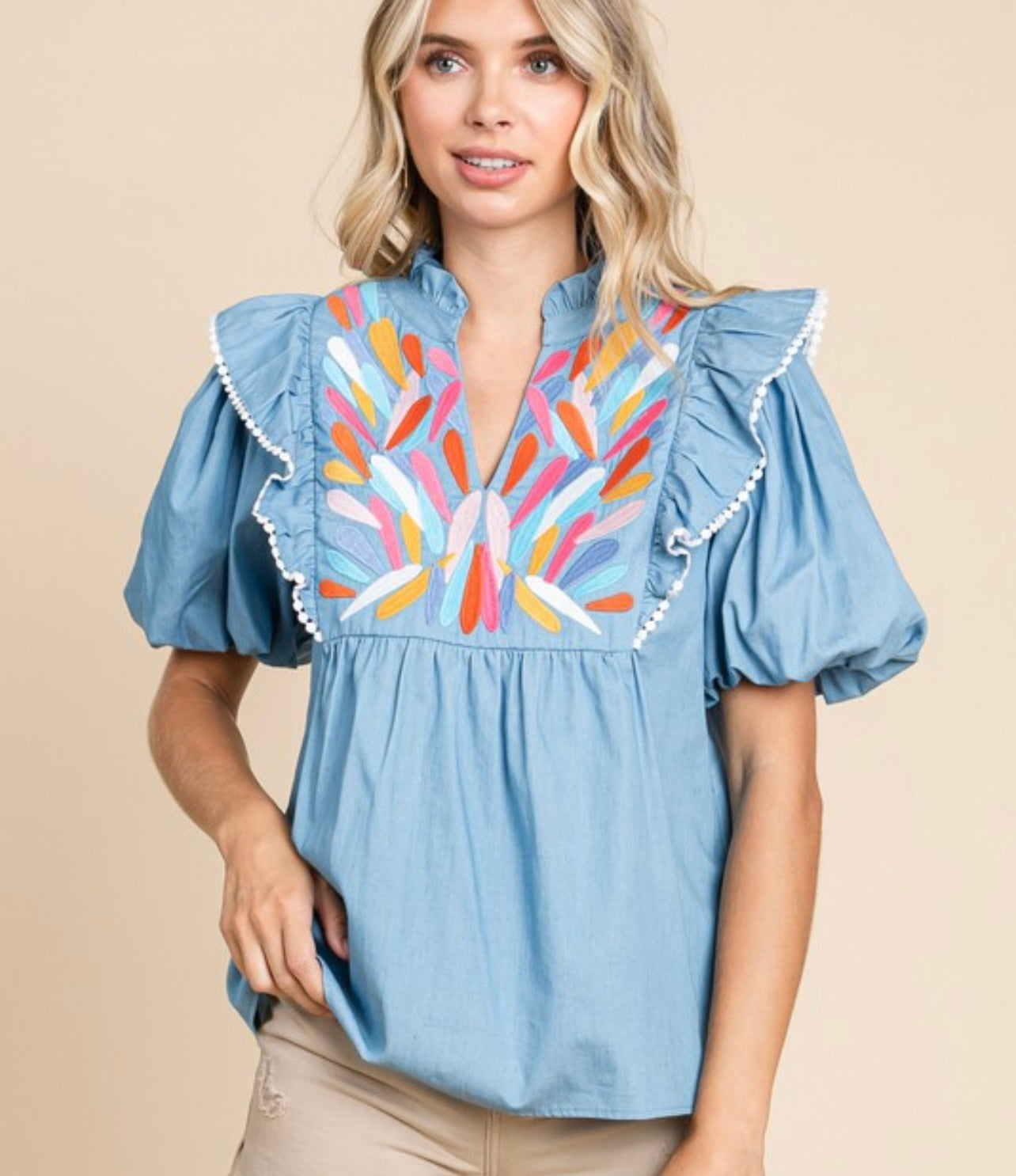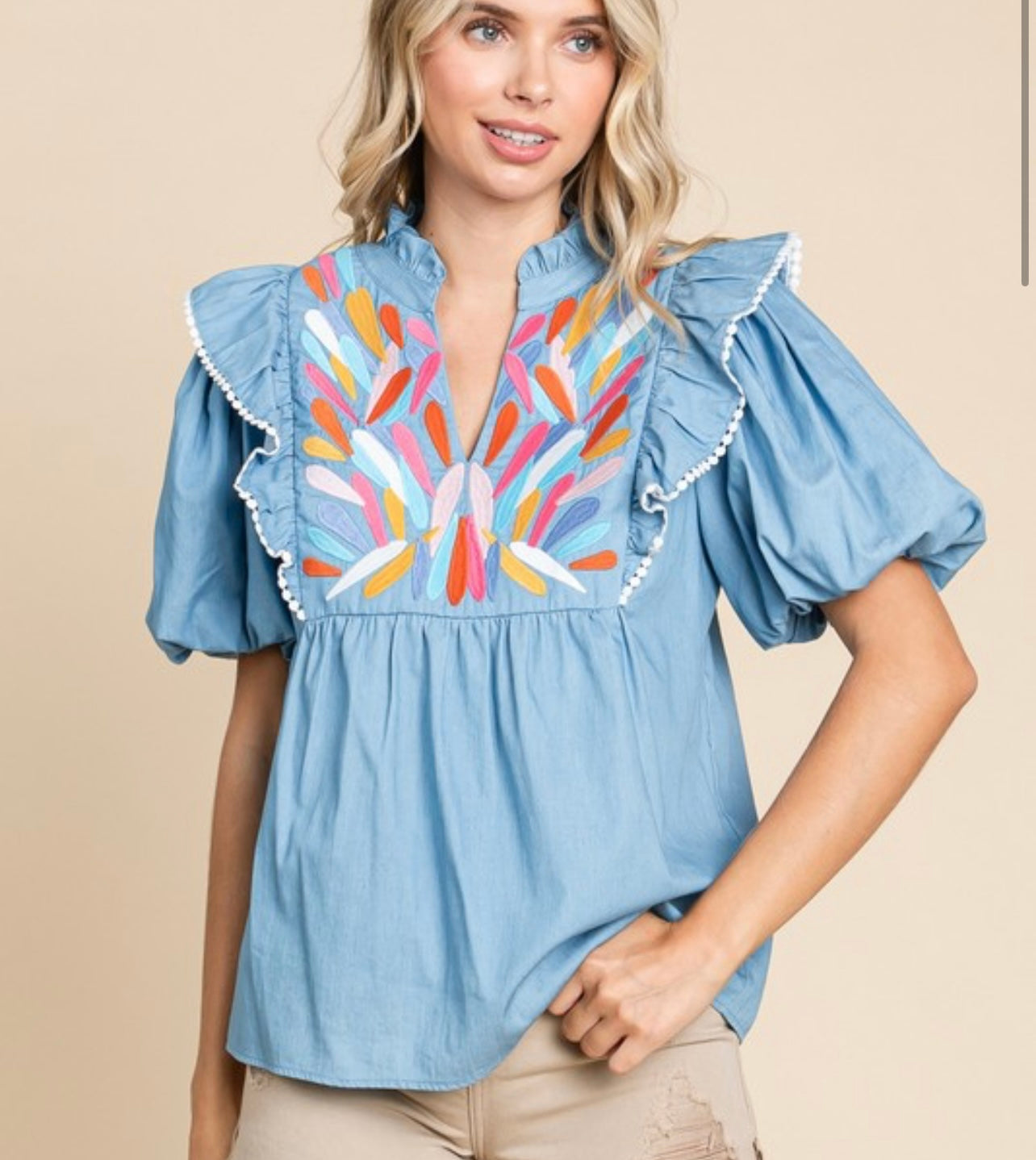Beautiful embroidery chambray top