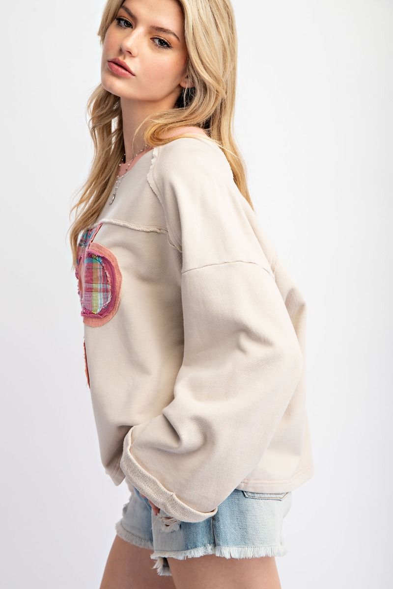 FLOWER PATCH FRONT TERRY KNIT PULLOVER