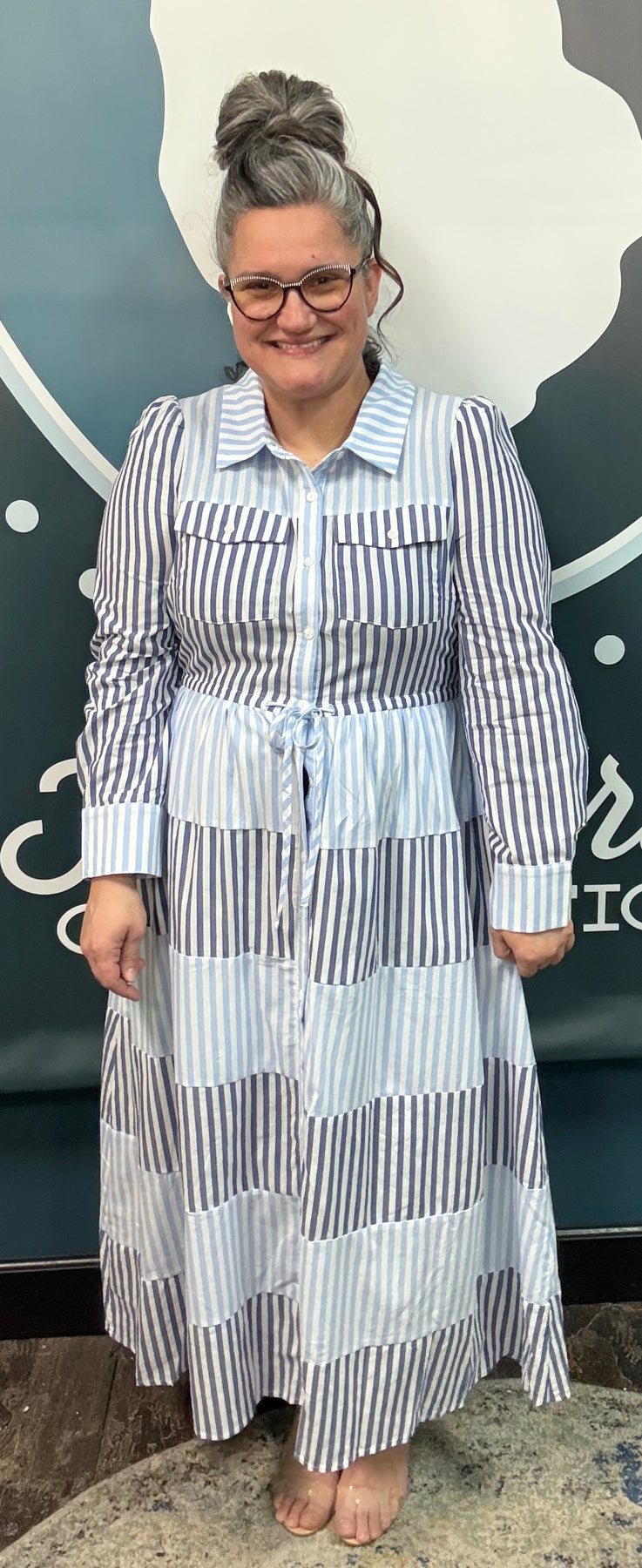 Beautiful 2 tone stripe dress that is perfect for spring!