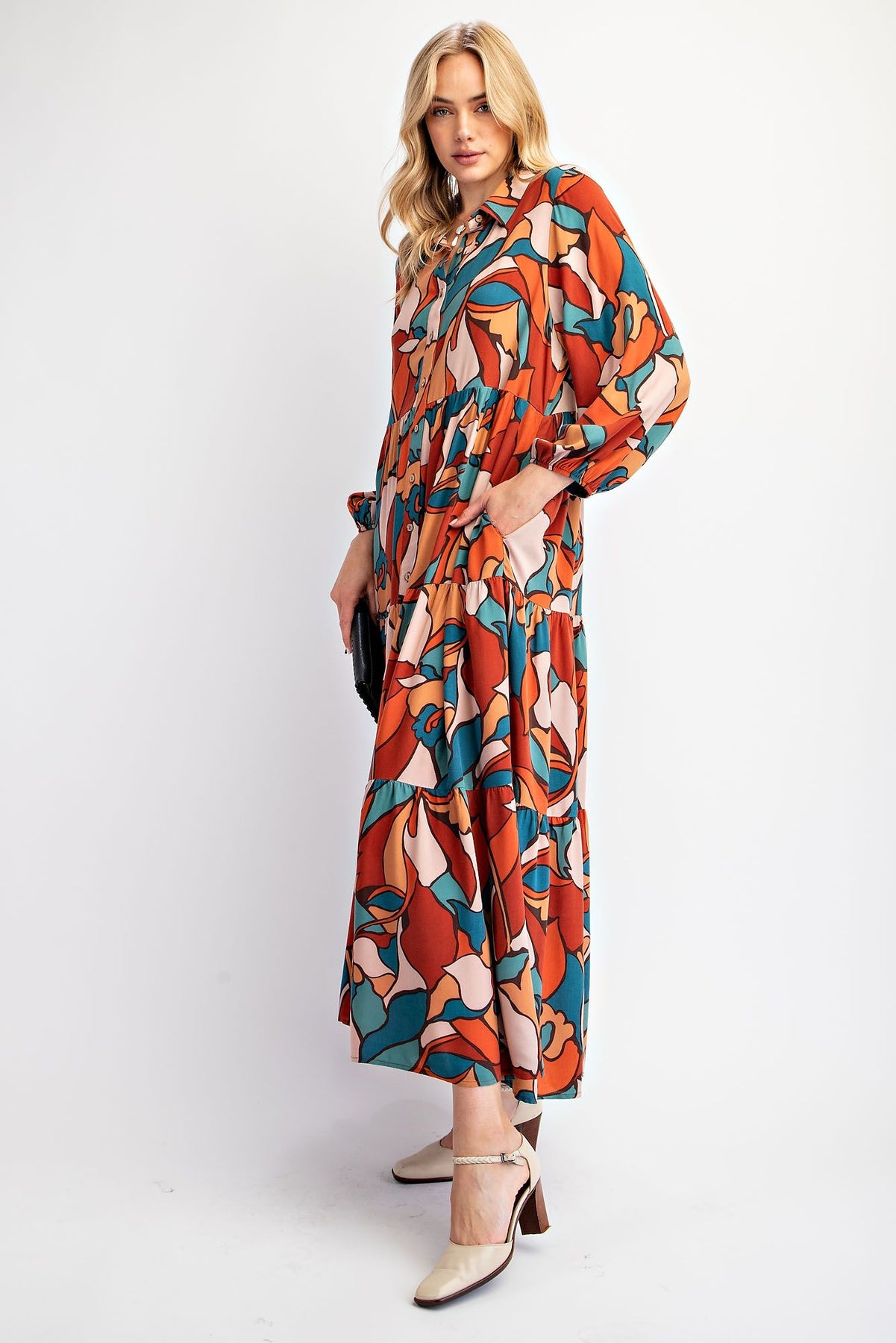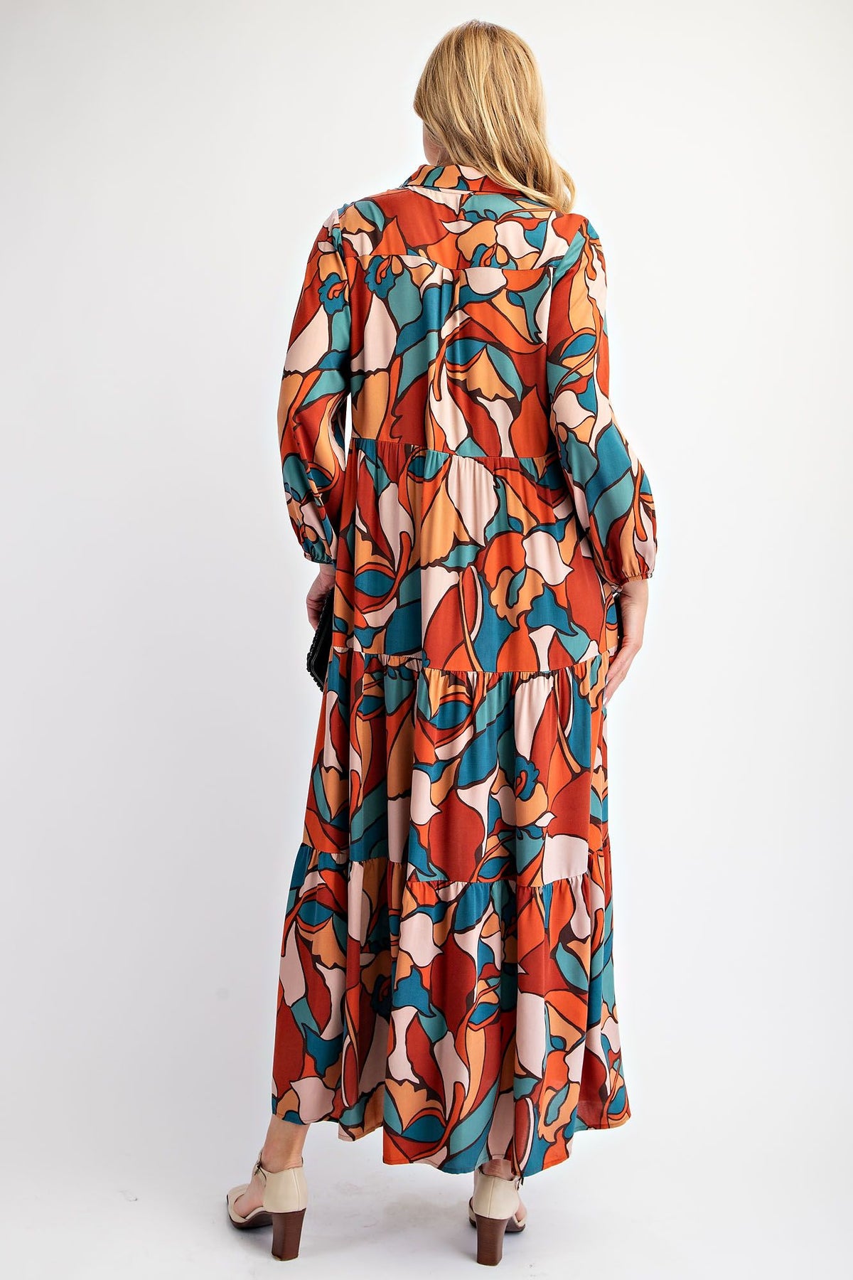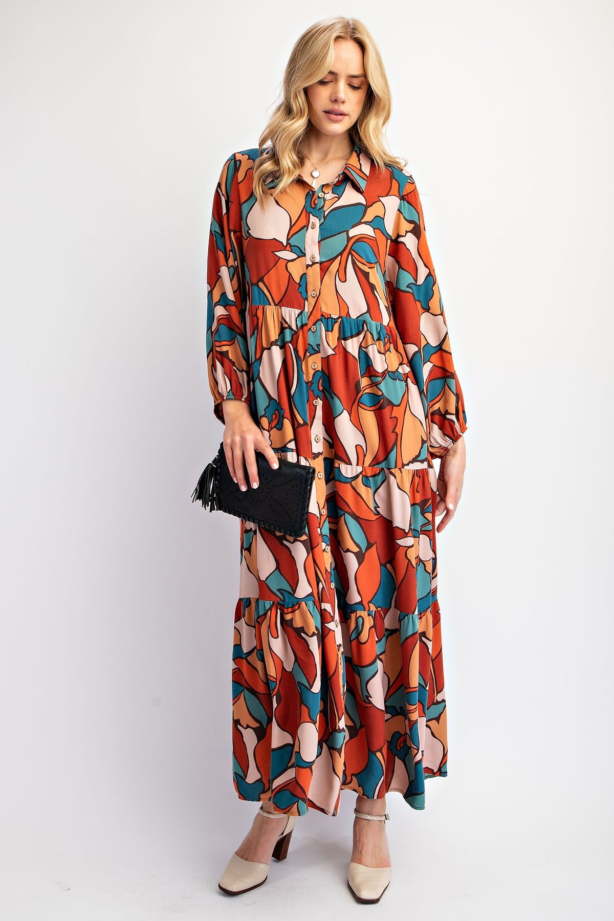 Amber ~ Button Down Maxi Dress ~ Teal Brown