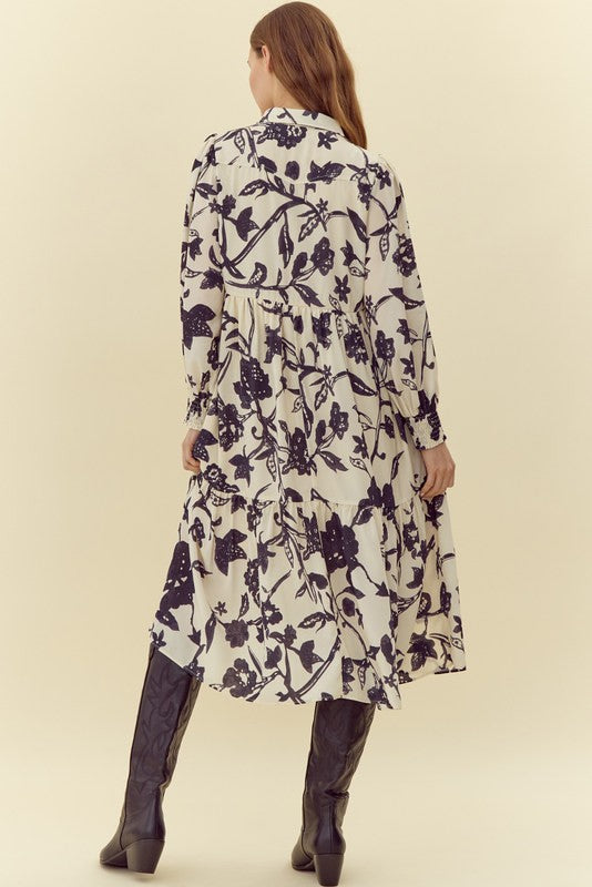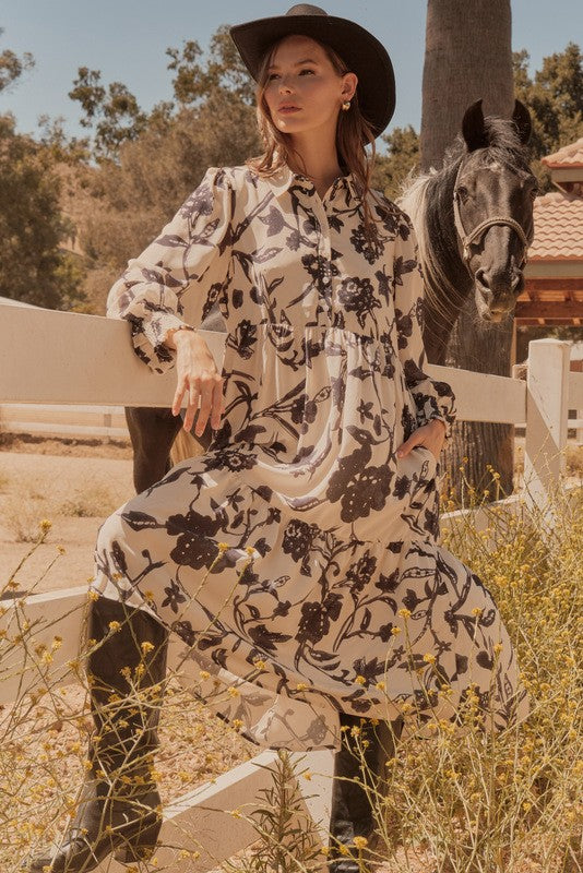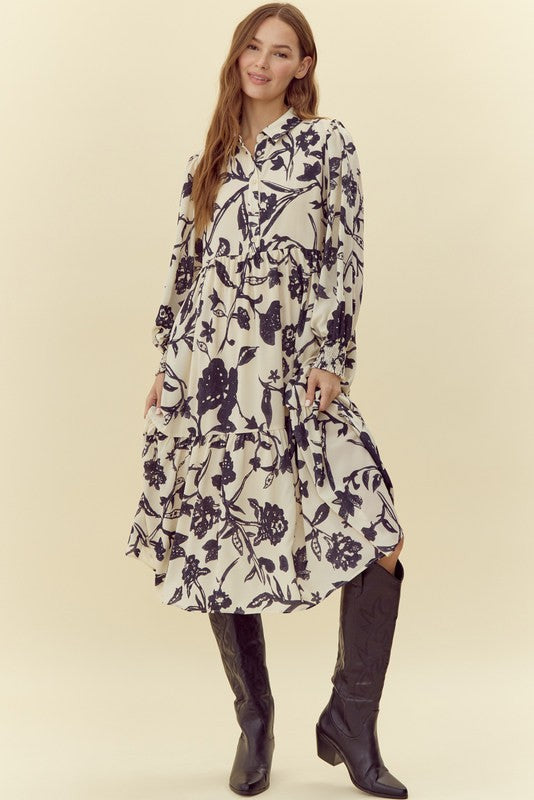 side pockets, long sleeves, smocked cuffs, and flounce hemline. - Non-sheer, lightweight. - Model is 5'10'' and is wearing a Small.