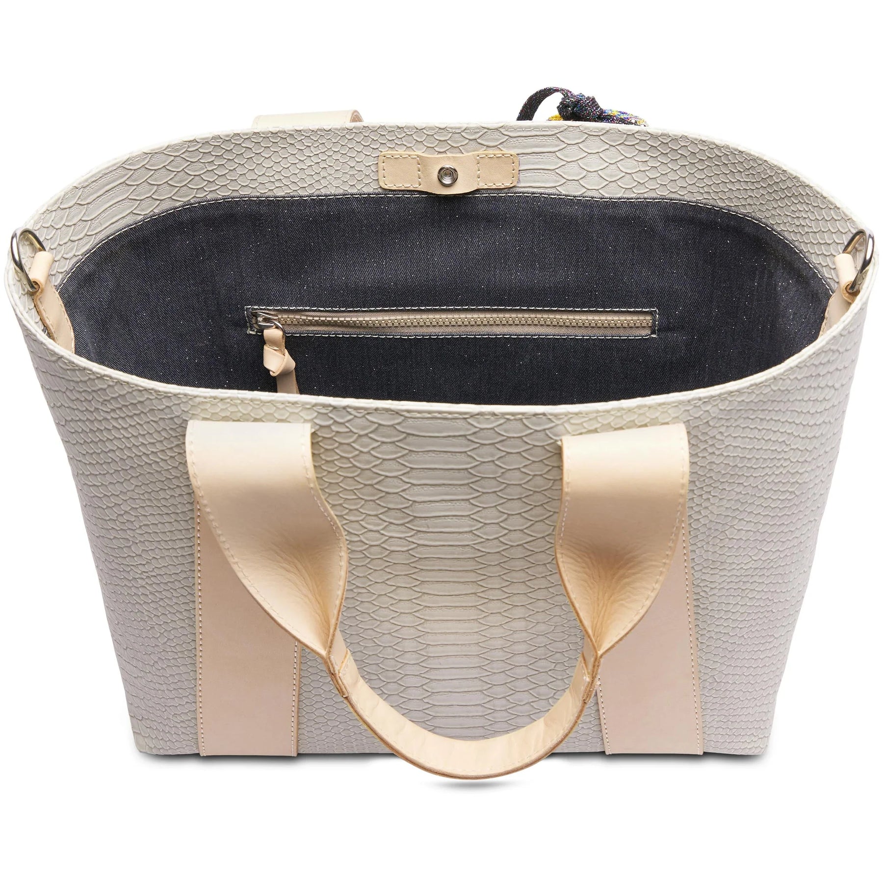 • Natural leather handles and trim