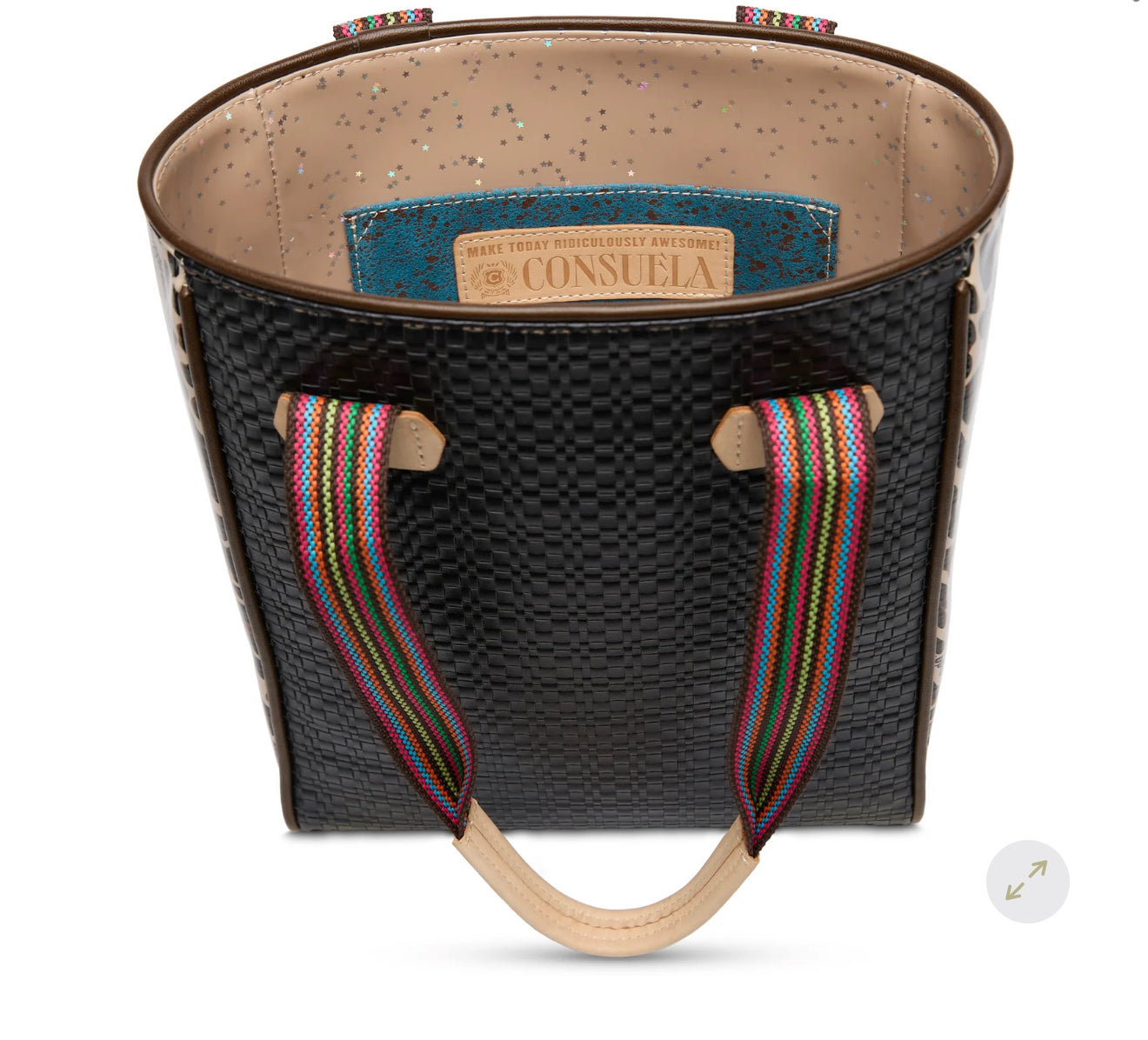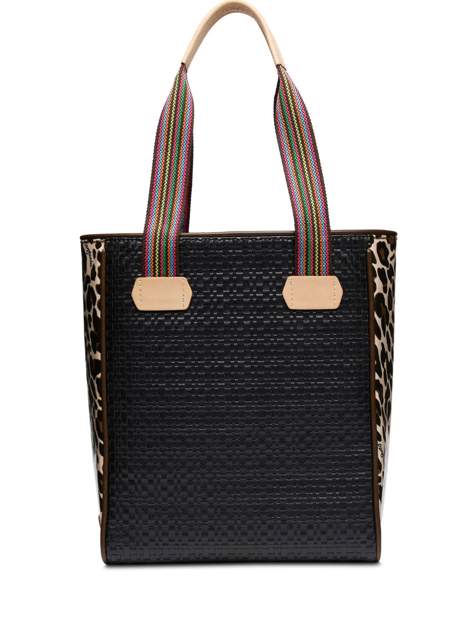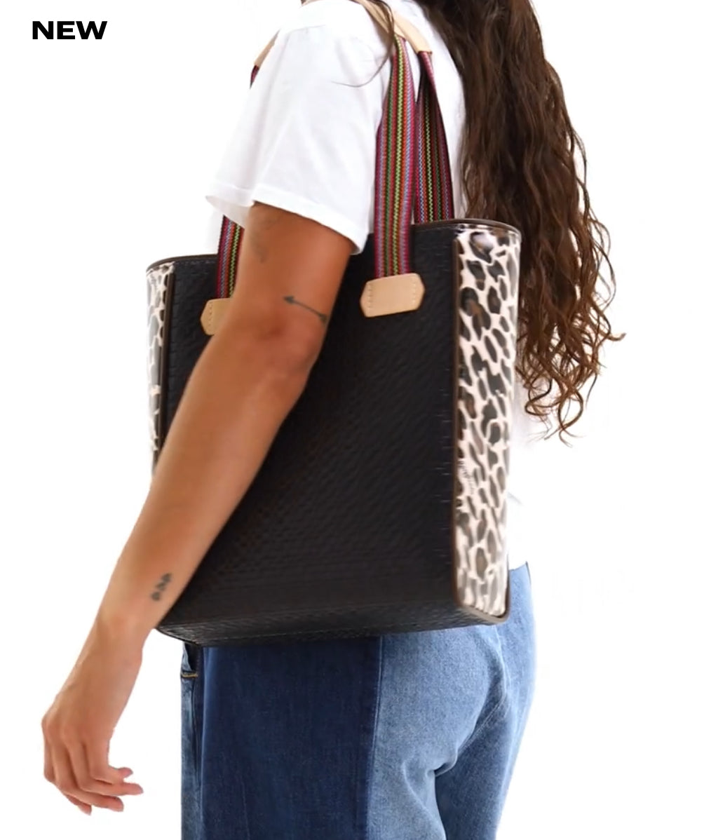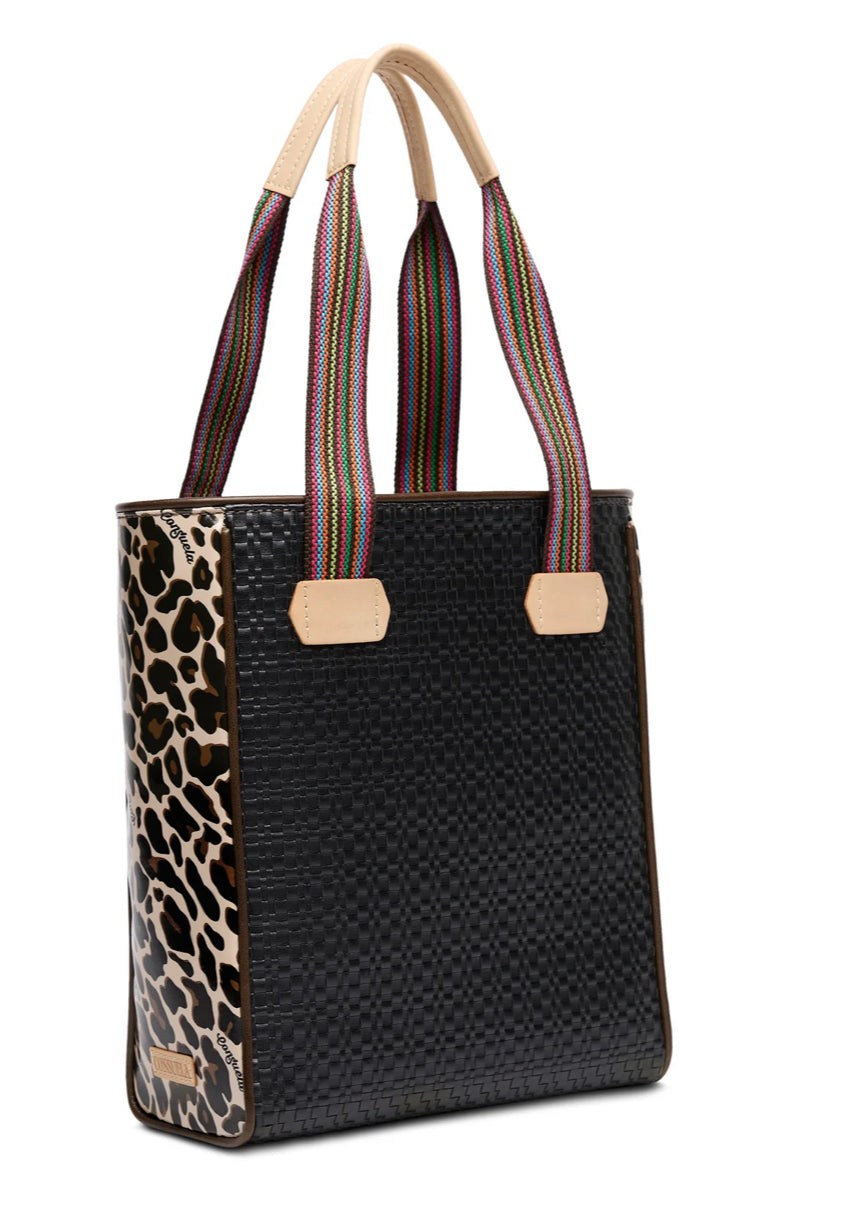 The Chica Tote is the smaller version of our signature Classic Tote. With a slim silhouette perfect for life-on-the-go, the Chica carries all you need with ease. Topped with comfortable woven handles, this multi-functional tote is trimmed in natural leather and crafted to hold its shape. Our tote features a roomy interior and pockets.