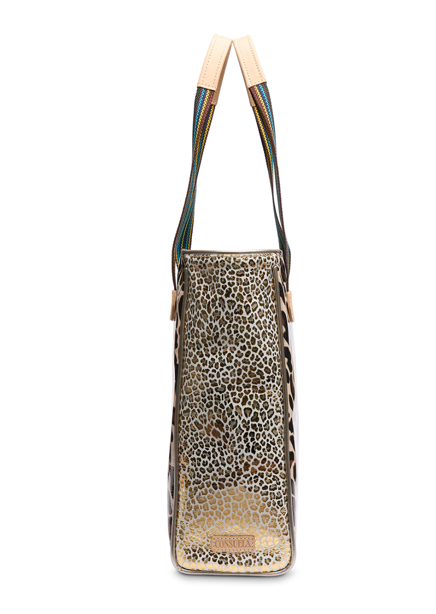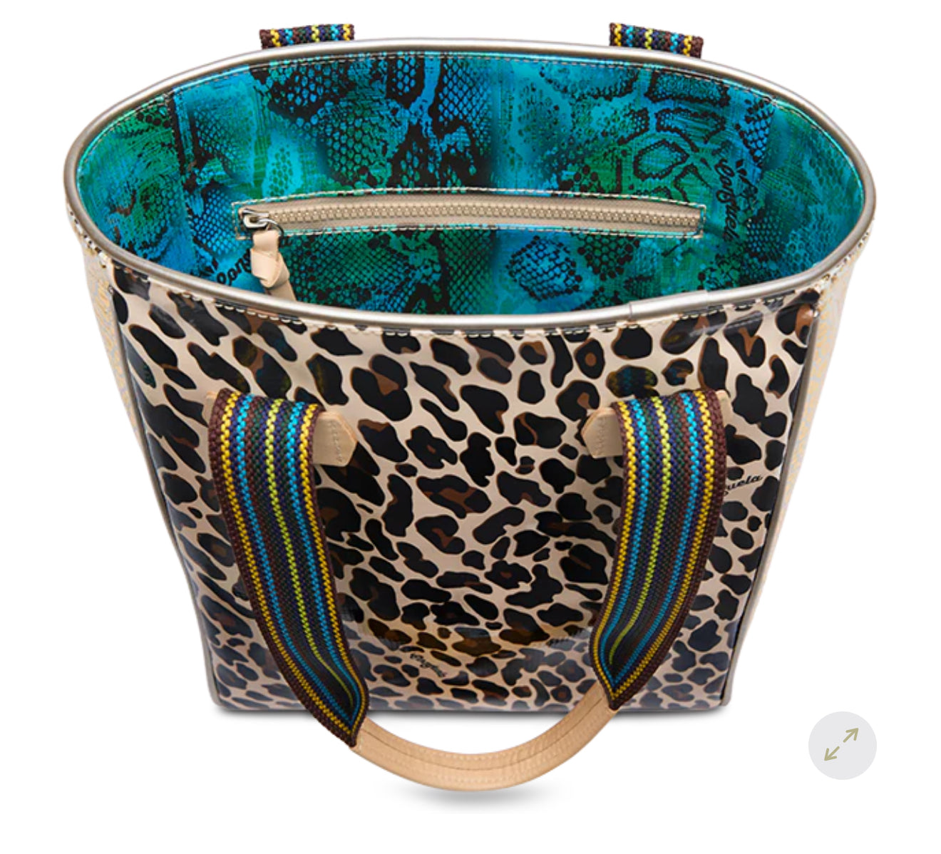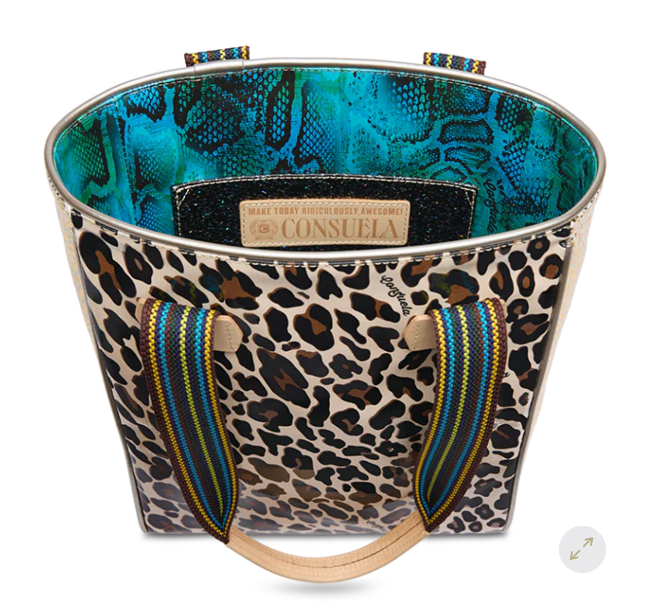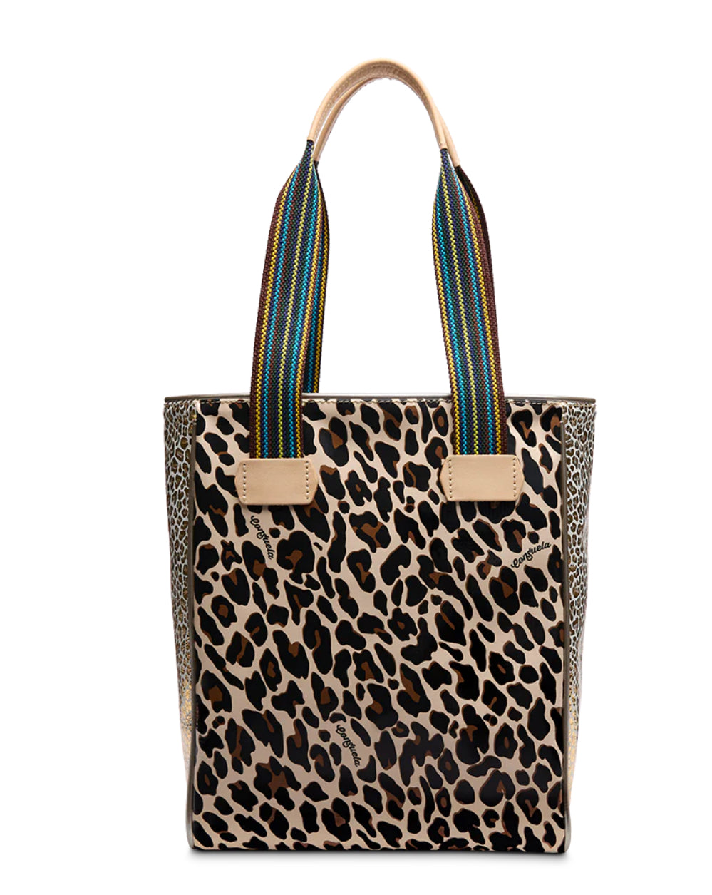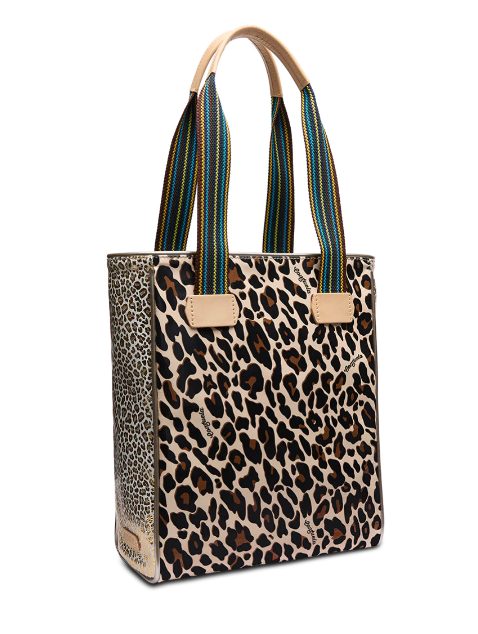 The Chica Tote is the smaller version of our signature Classic Tote. With a slim silhouette perfect for life-on-the-go, the Chica carries all you need with ease. Topped with comfortable woven handles, this multi-functional tote is trimmed in natural leather and crafted to hold its shape. Our tote features a roomy interior and pockets.