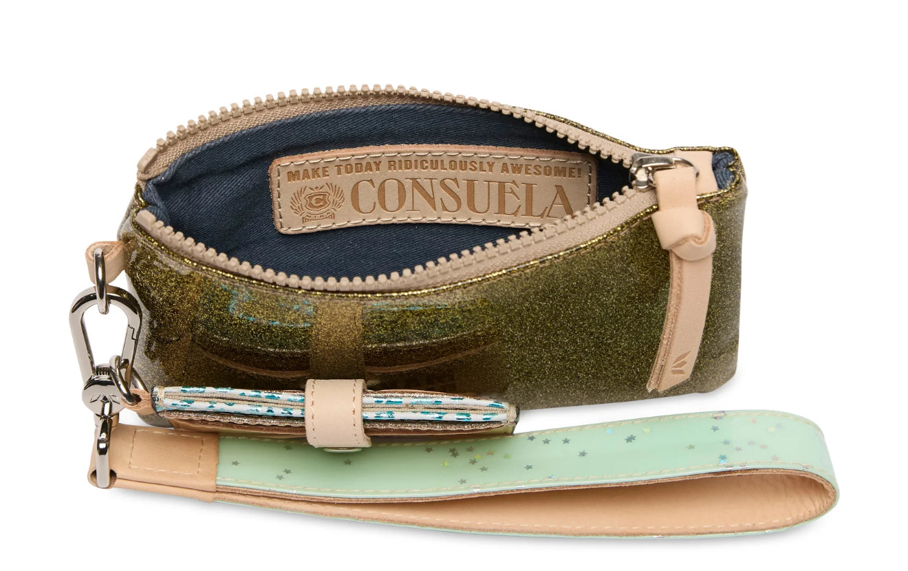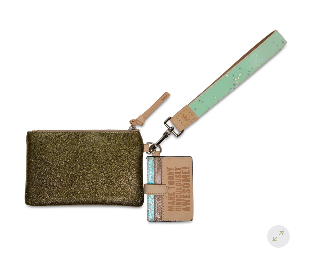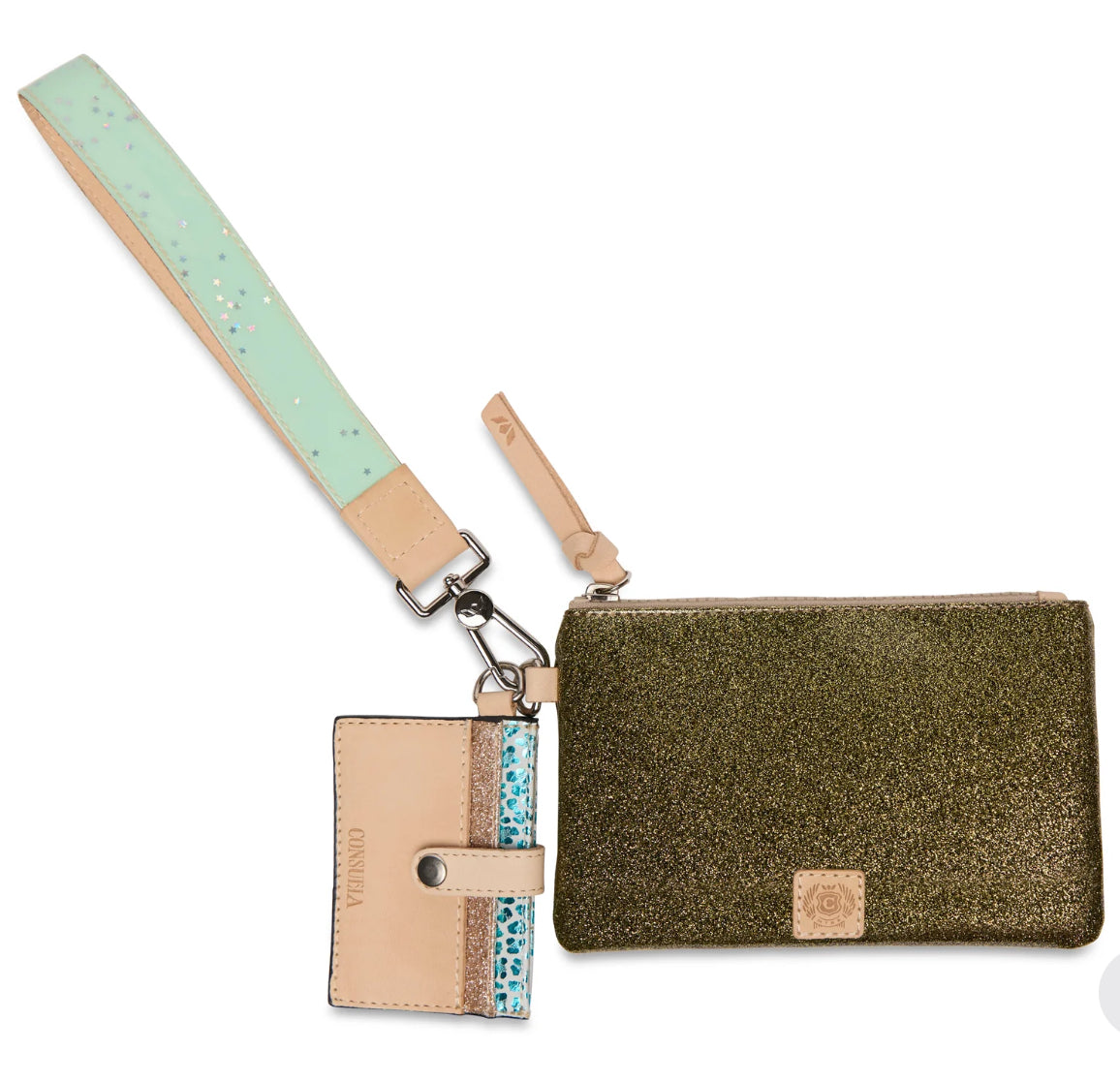 The Combi, a combination of on-the-go accessories, is a new way to carry your keys, cards, and the small stuff together or separately. This embroidered wristlet wallet includes a pocket pouch, secure card slot wallet and fits comfortably around your wrist.