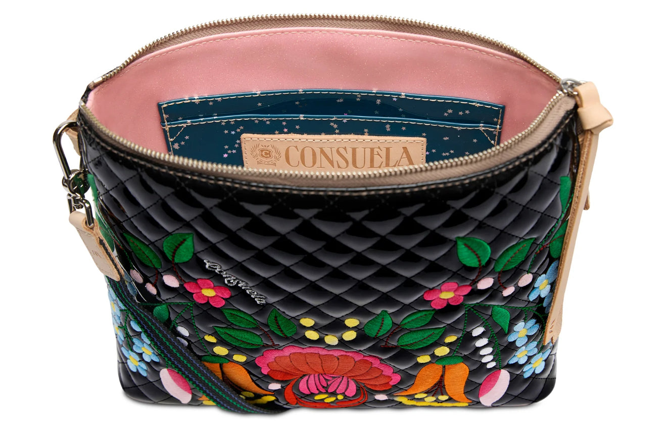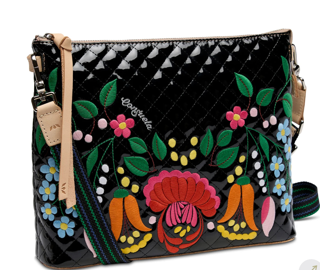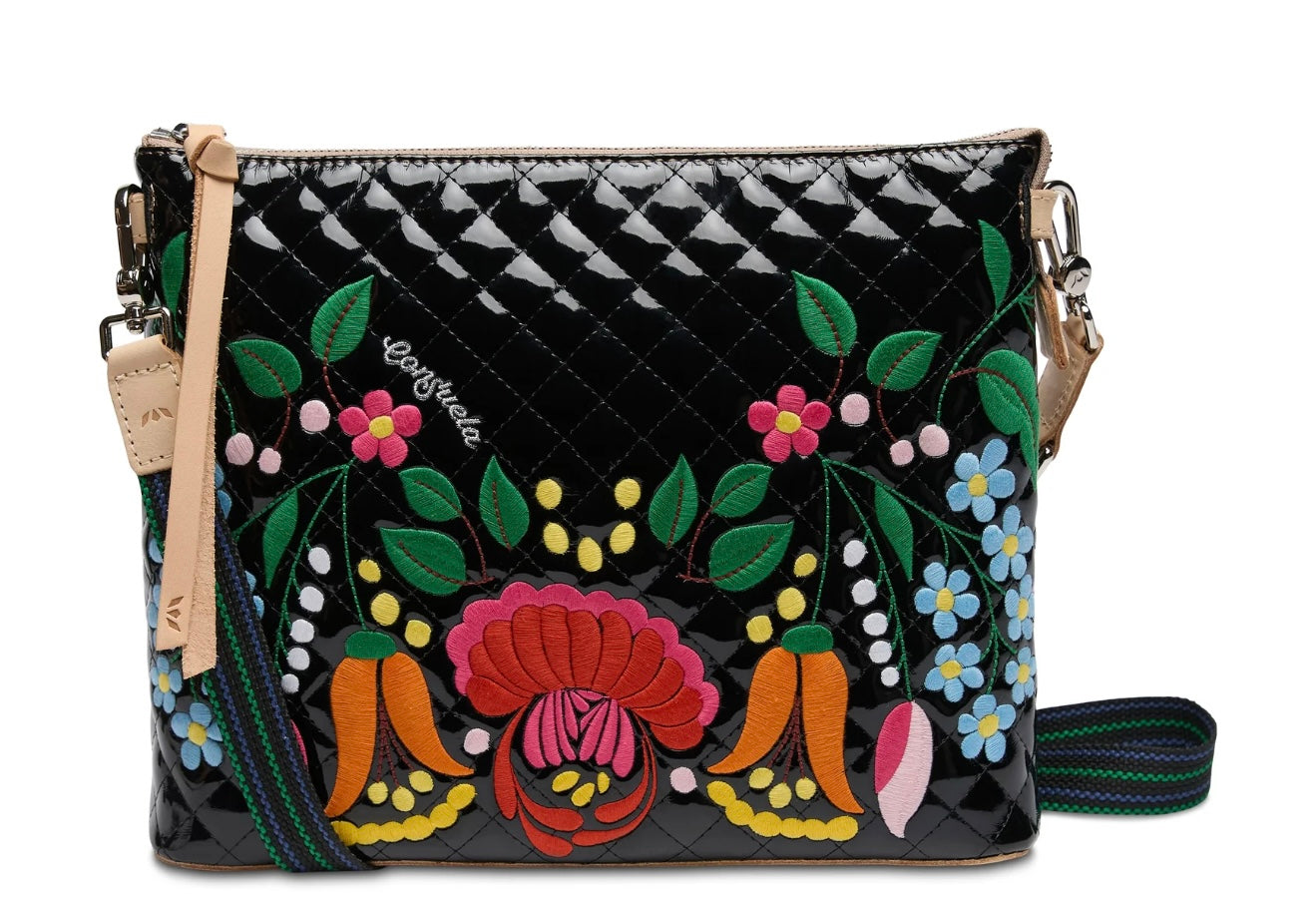 This embroidered crossbody bag is ready to take on the day with an adjustable strap and two interior pockets. Crafted with a roomy open interior, the Downtown Crossbody can carry the essentials and more.