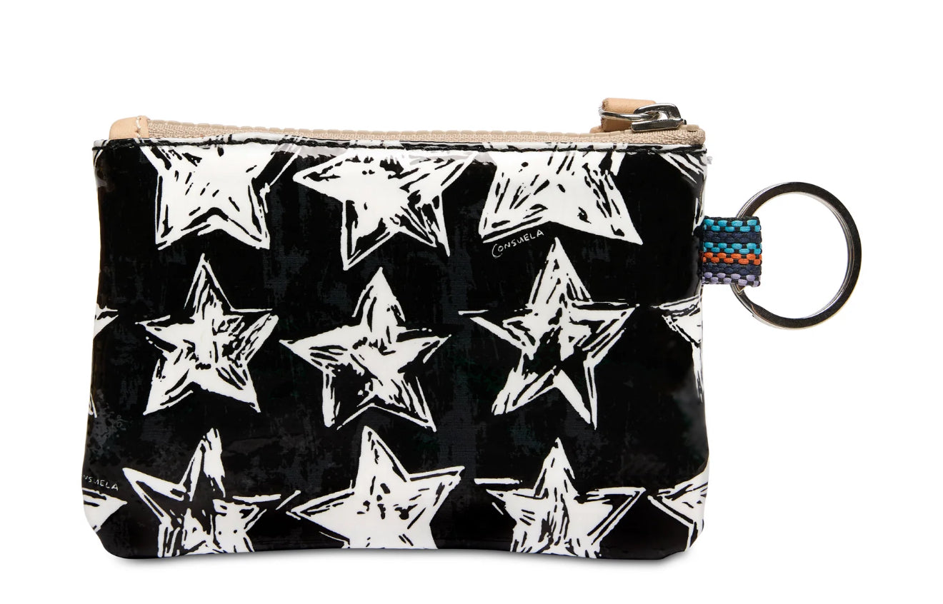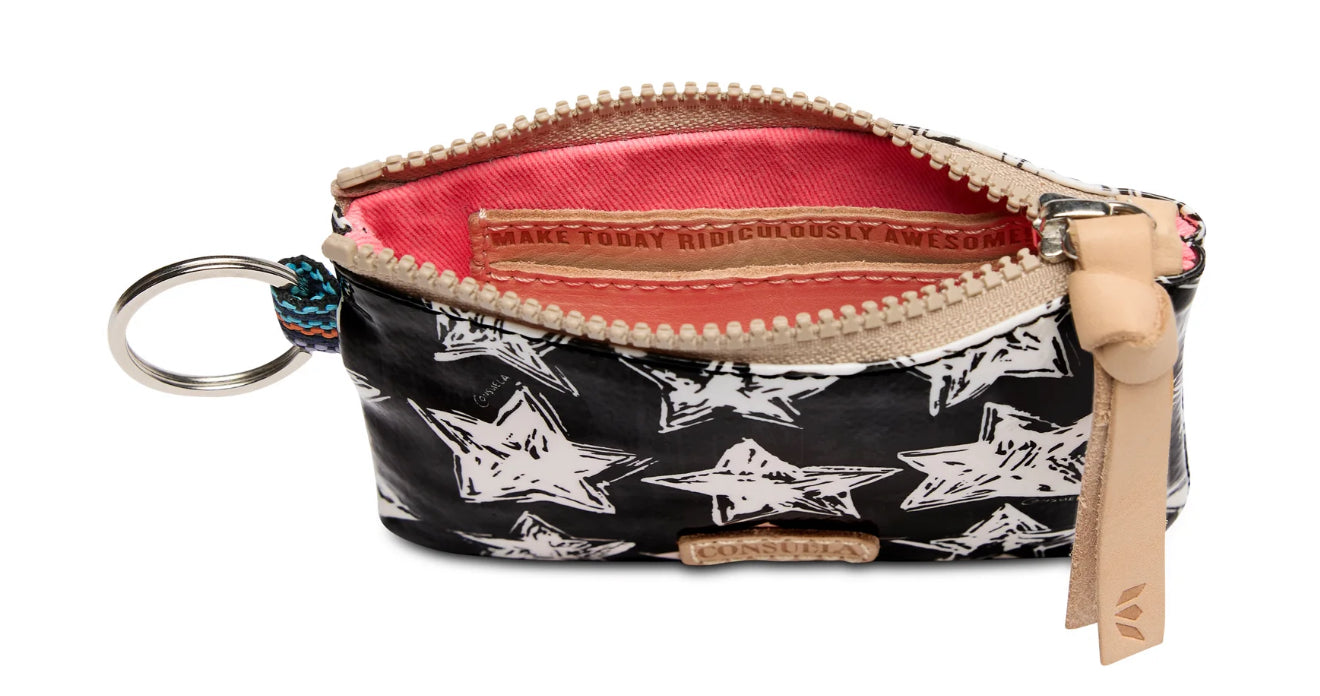 The Pouch is an easy, all-in-one bag to keep your cards and cash organized and on hand. An attached metal keyring takes this colorful pouch wallet from your bag to keys with ease.
