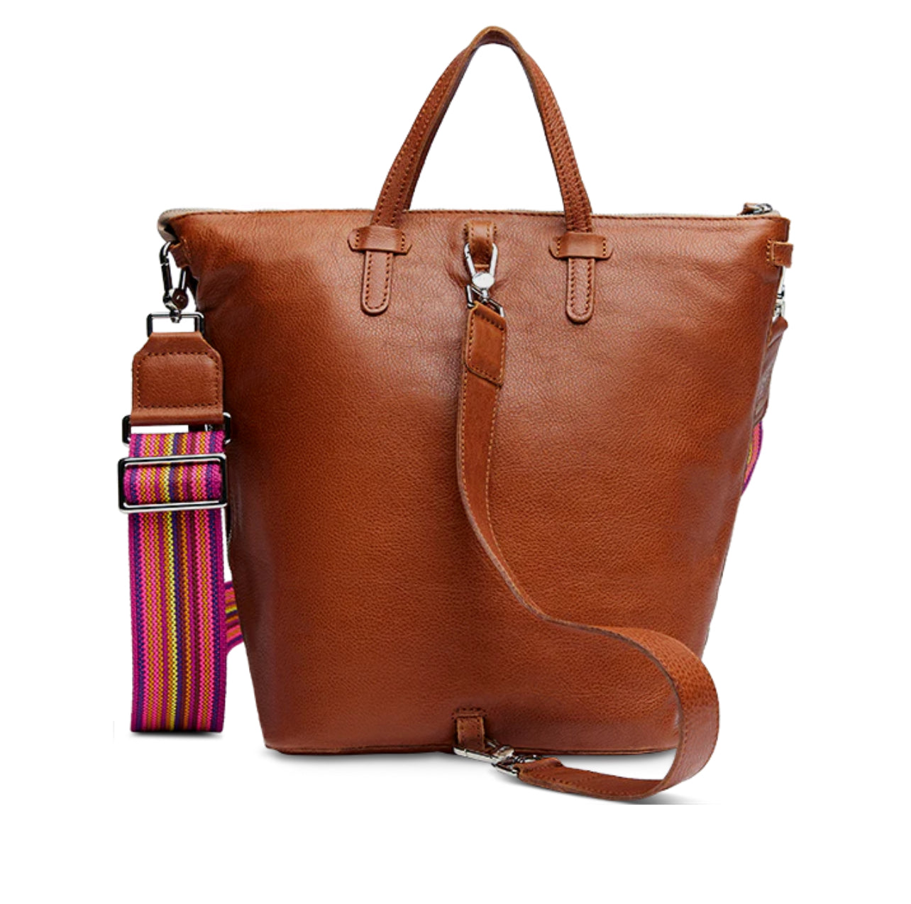 • Includes two detachable straps: a leather shoulder strap and an adjustable woven crossbody strap