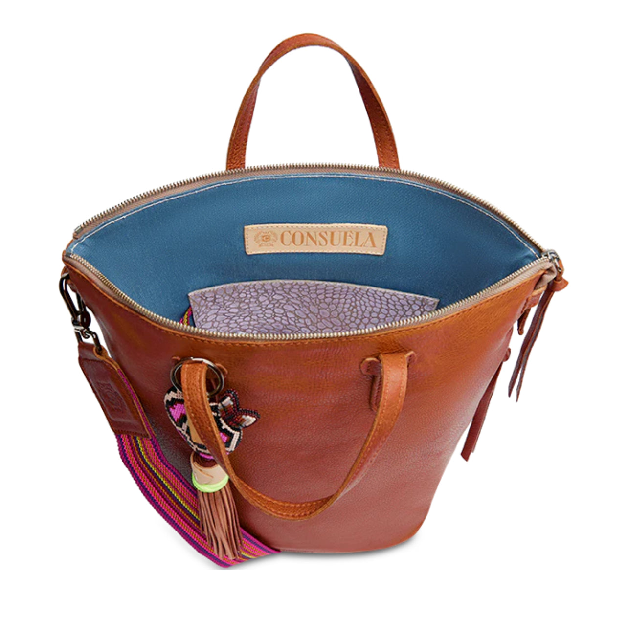• 10 ¼” (W at the base), 14 ½” (W at the top) x 13” (H) x 6 ¾” (D), 13”-22 ¾” adjustable crossbody strap drop