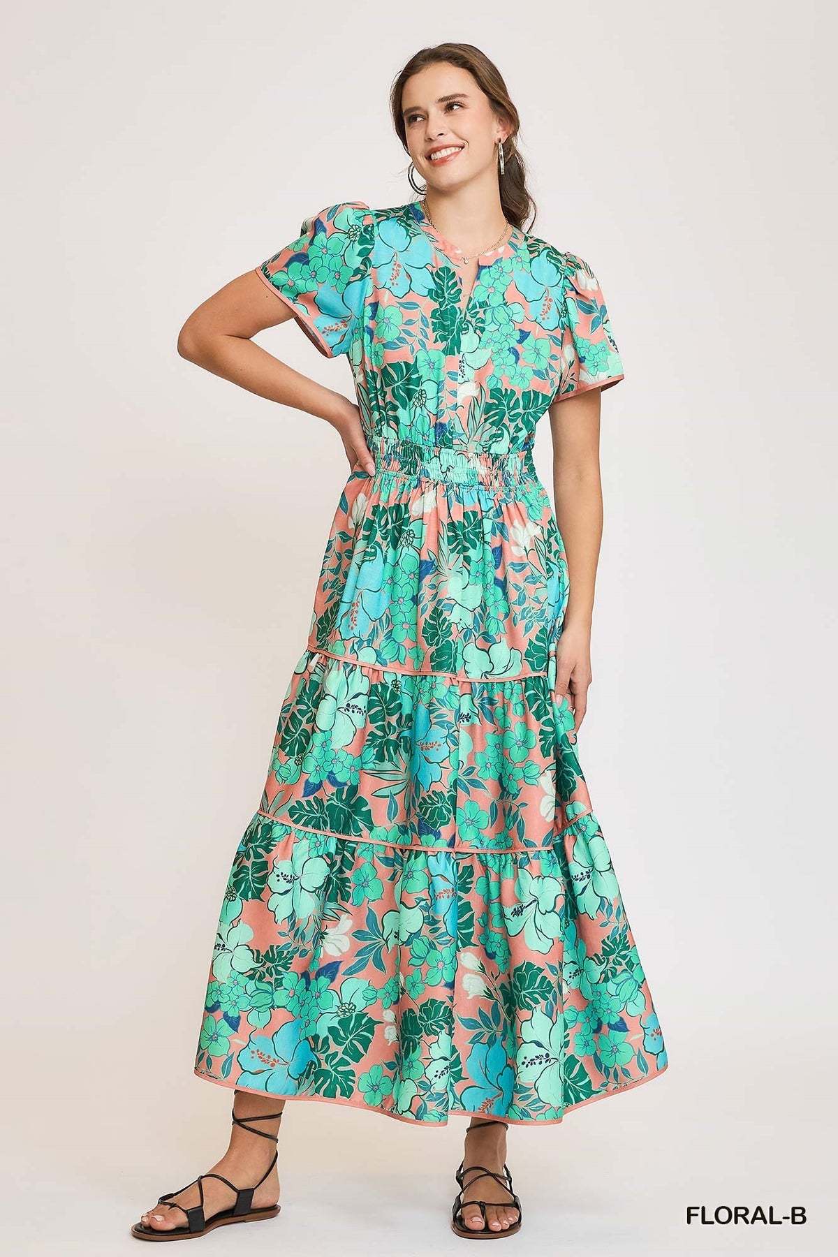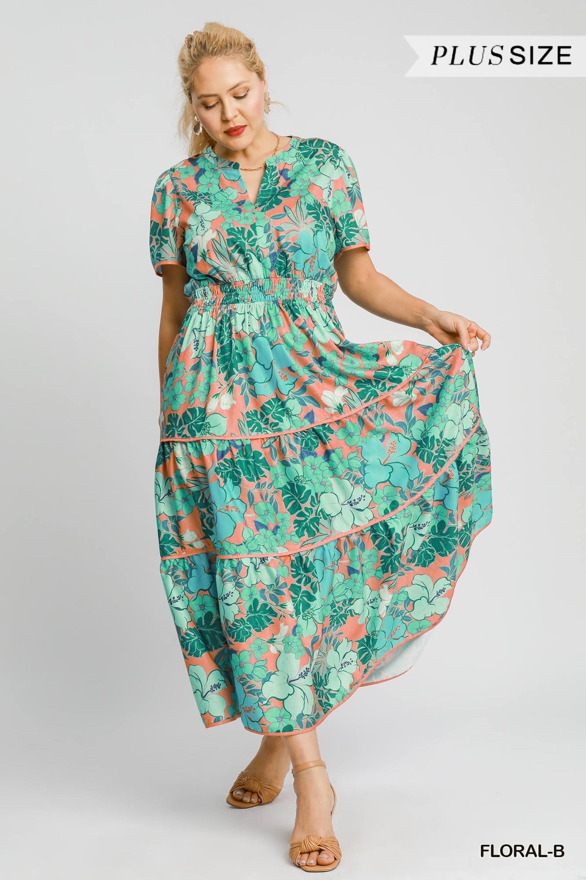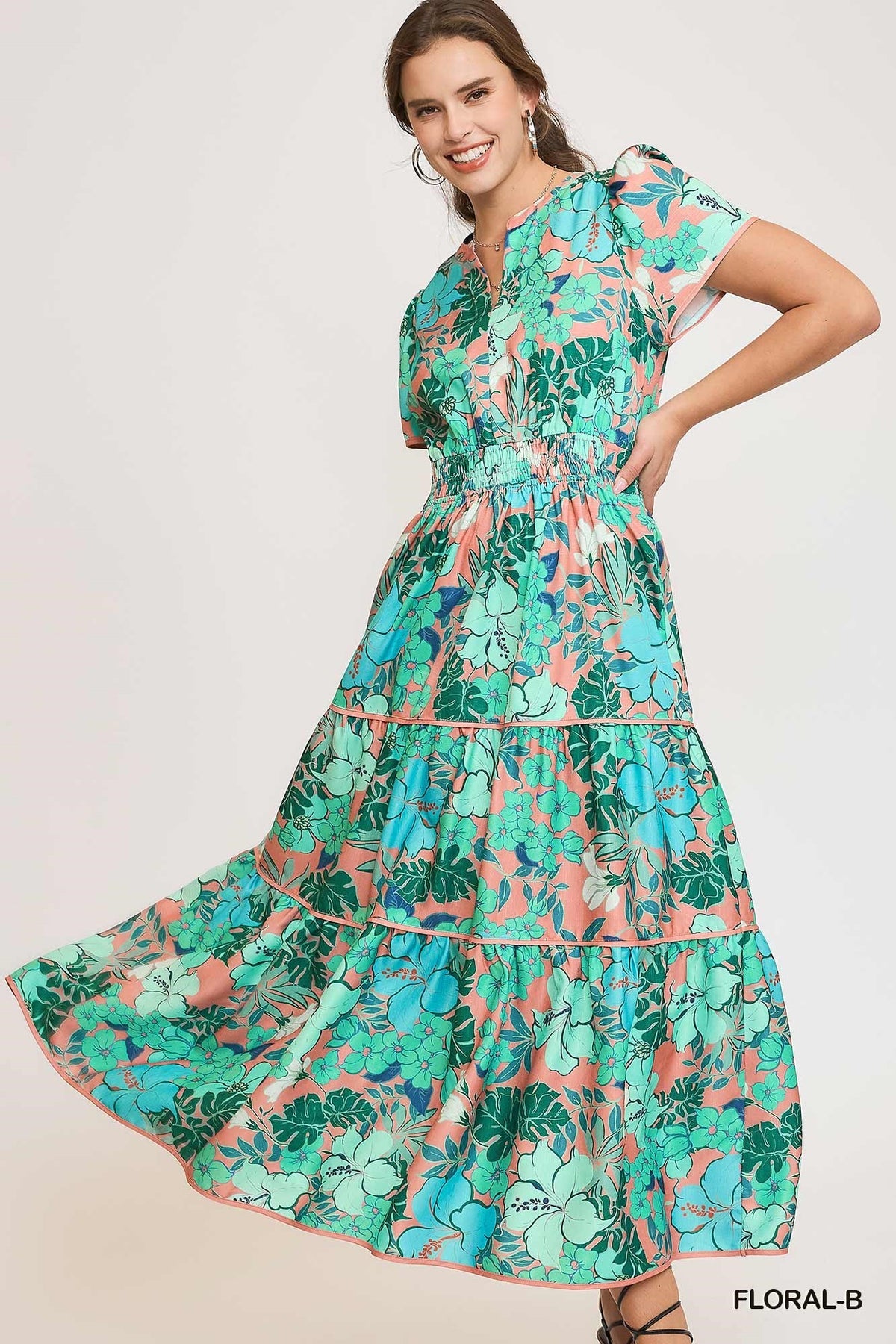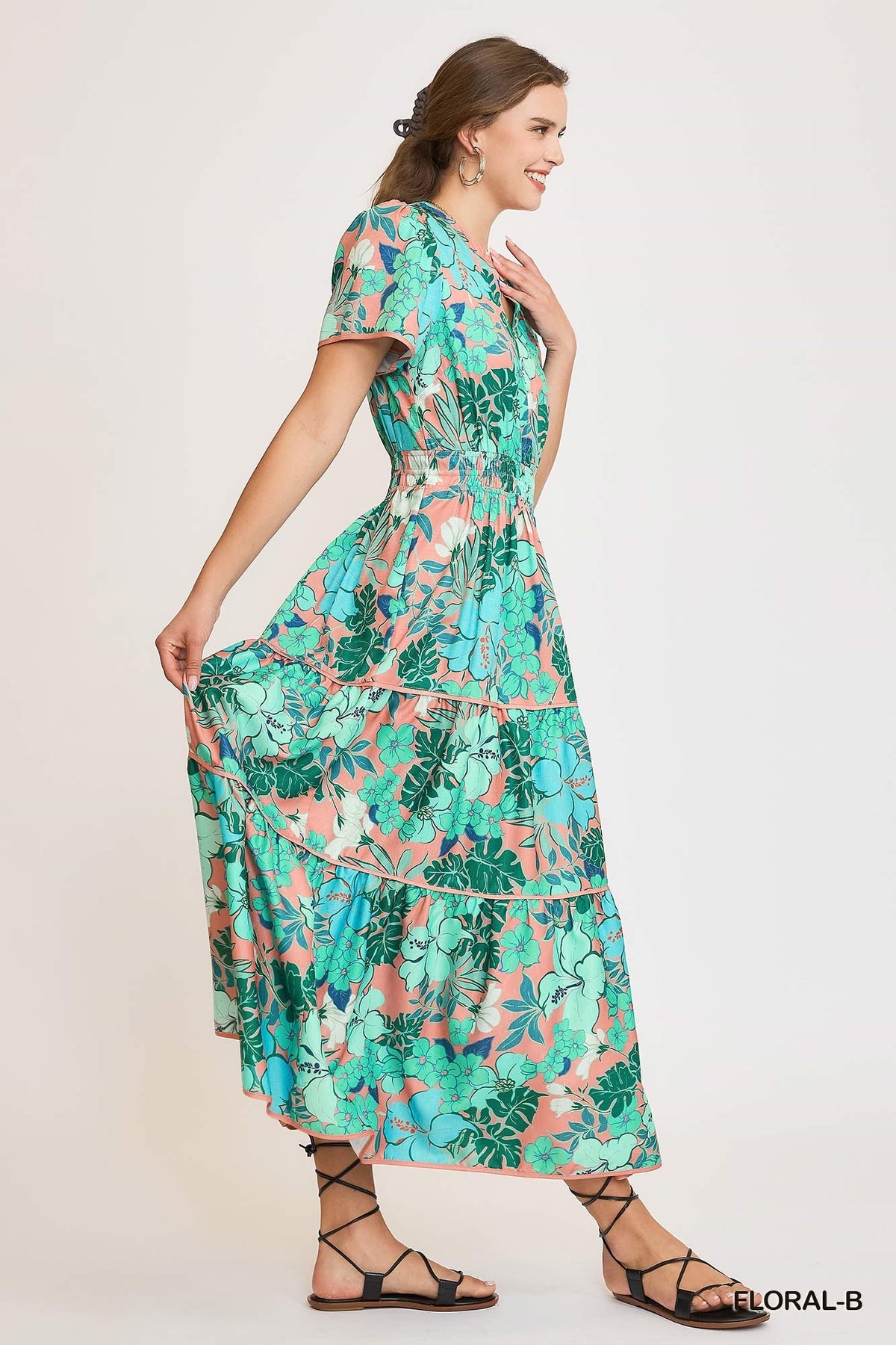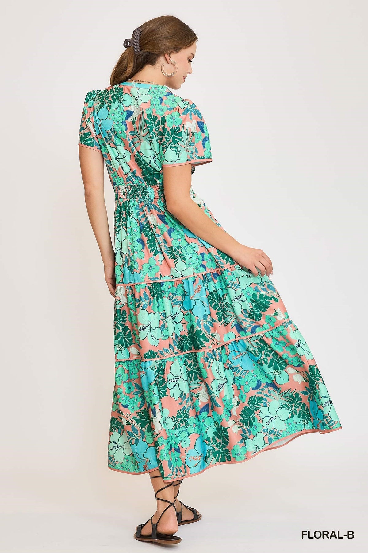 This tiered, V neck, maxi dress is perfect for your Hawaiian vacation!