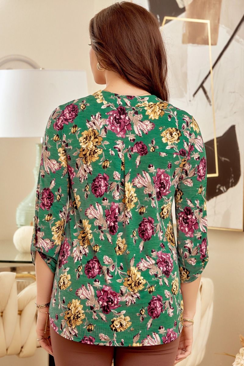 Lizzy Top ~ Evergreen Floral