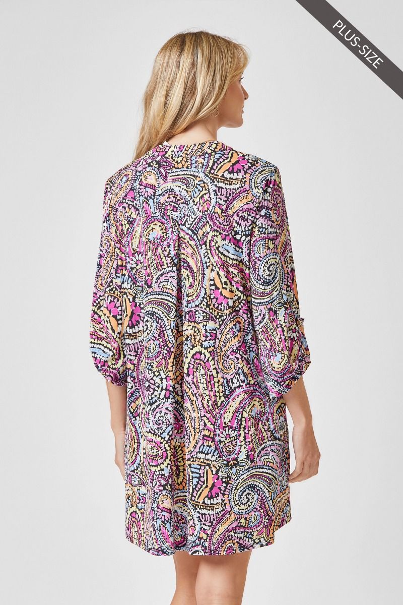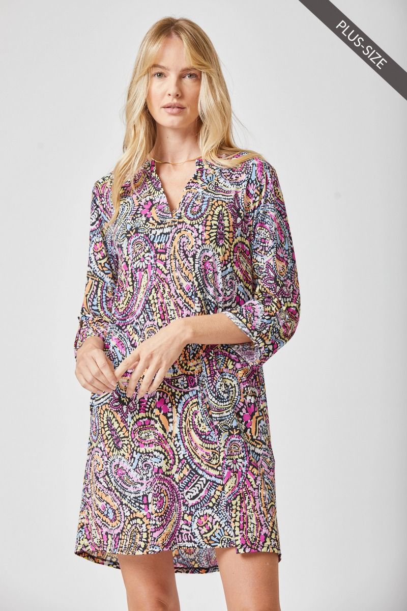 This is our classic a line dress that features lizzy neckline and tabbed sleeves. We love the shift dress on this wrinkle free material that is just so flattering with fun prints! Non sheer, knit. Stretchy.