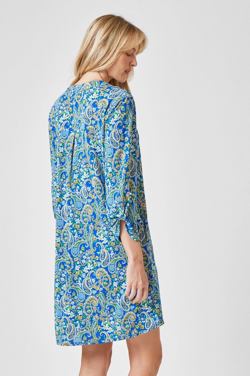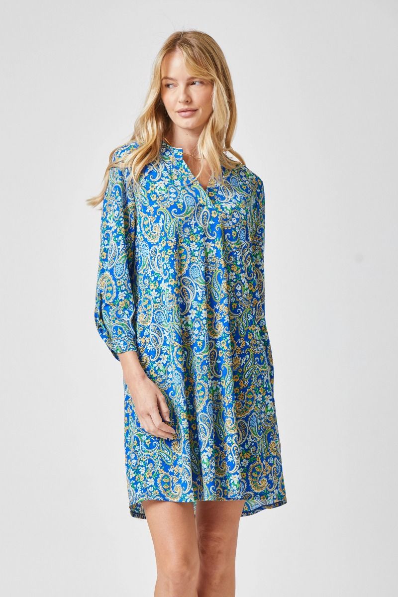 This is our classic a line dress that features lizzy neckline and tabbed sleeves. We love the shift dress on this wrinkle free material that is just so flattering with fun prints! Non sheer, knit. Stretchy.