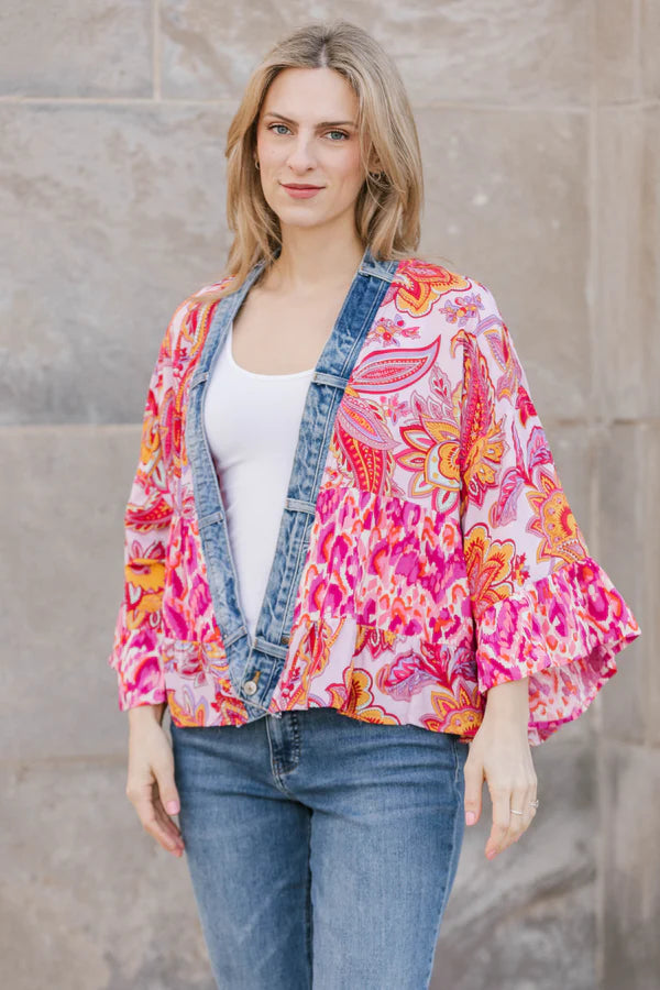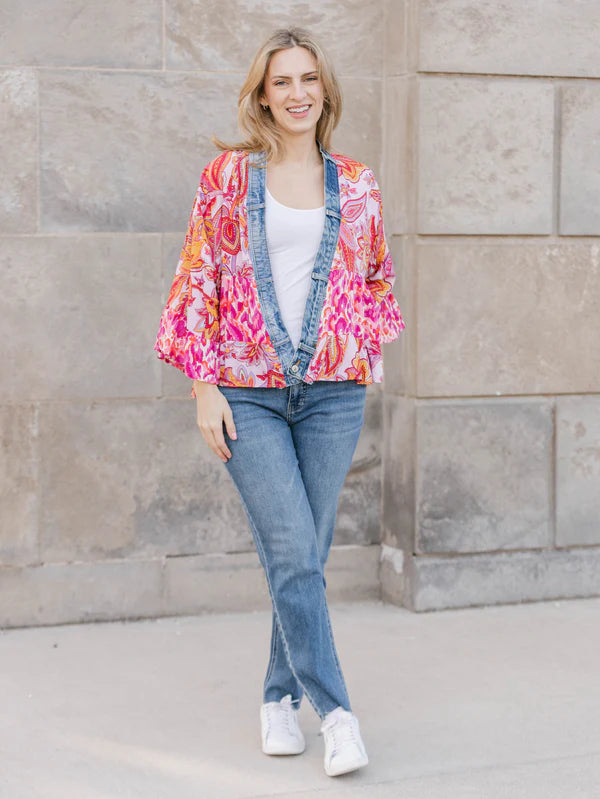 The prints are limited runs to be mindful of limiting our fabric waste. We have combined deconstructed vintage denim and upcycled them into many of the designs, this diverts it from the landfills and gives it new life.