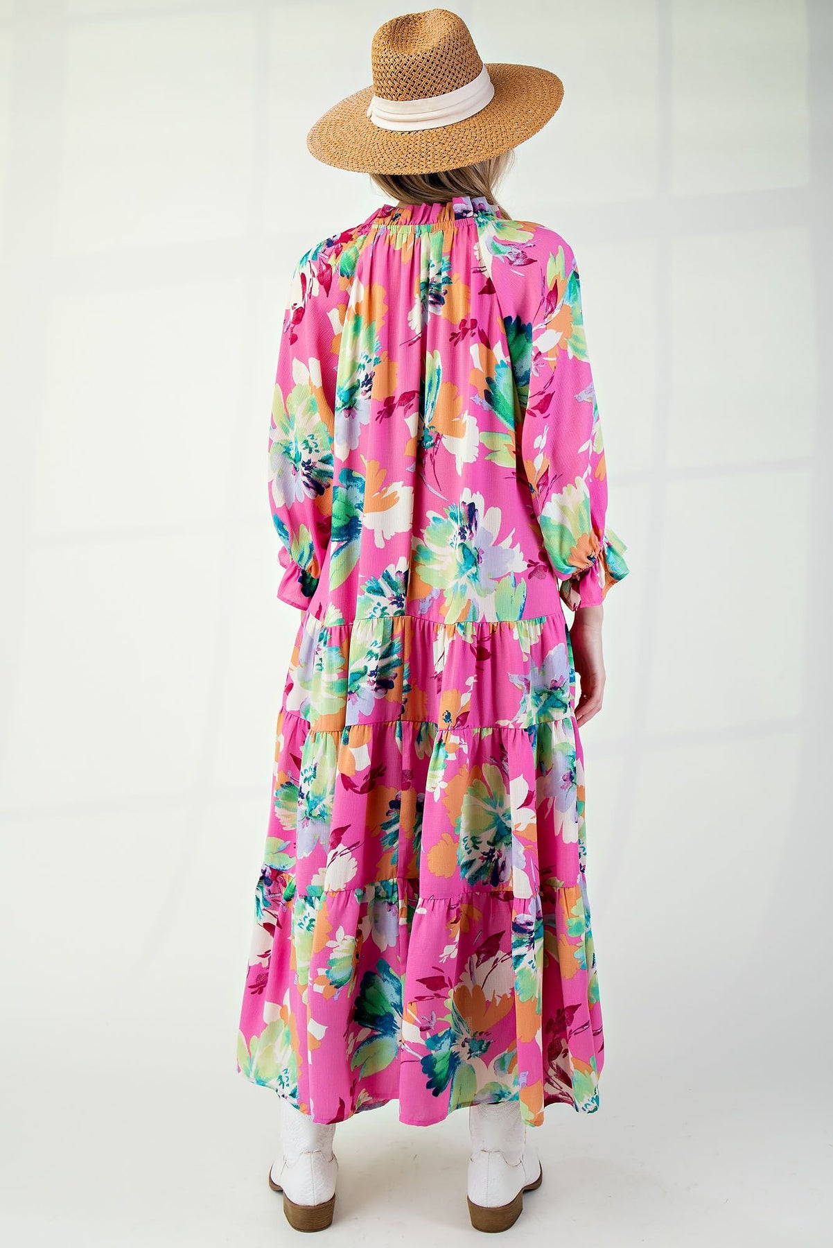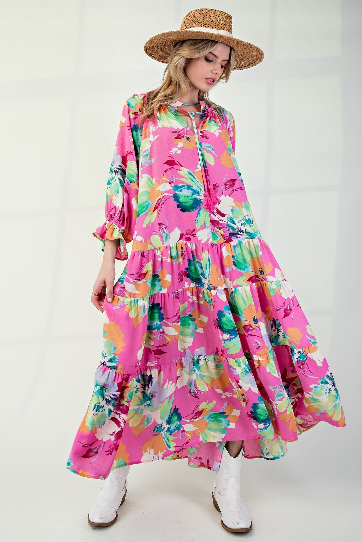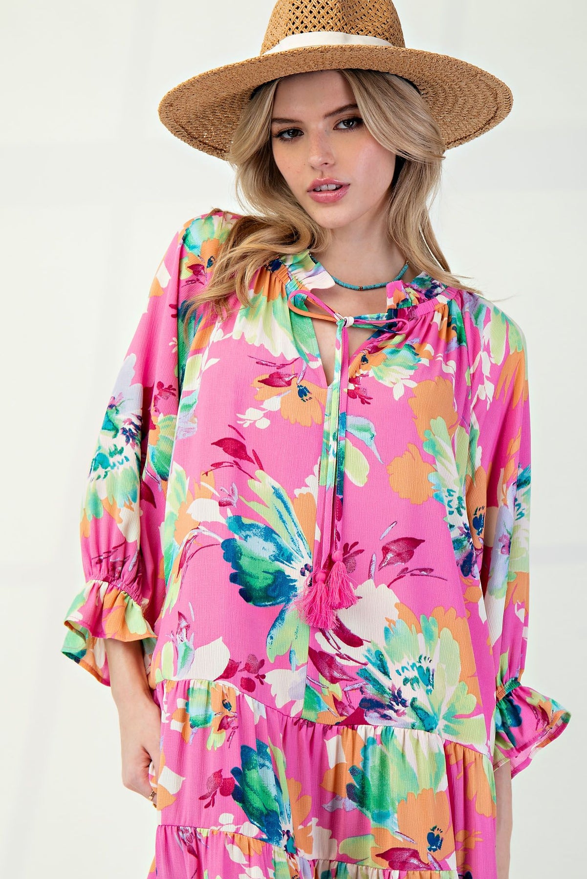 Ruffled V Cut Neckline with Adjustable Tassel Tie