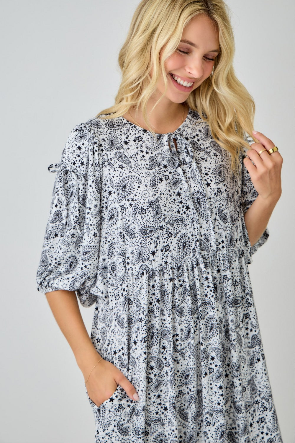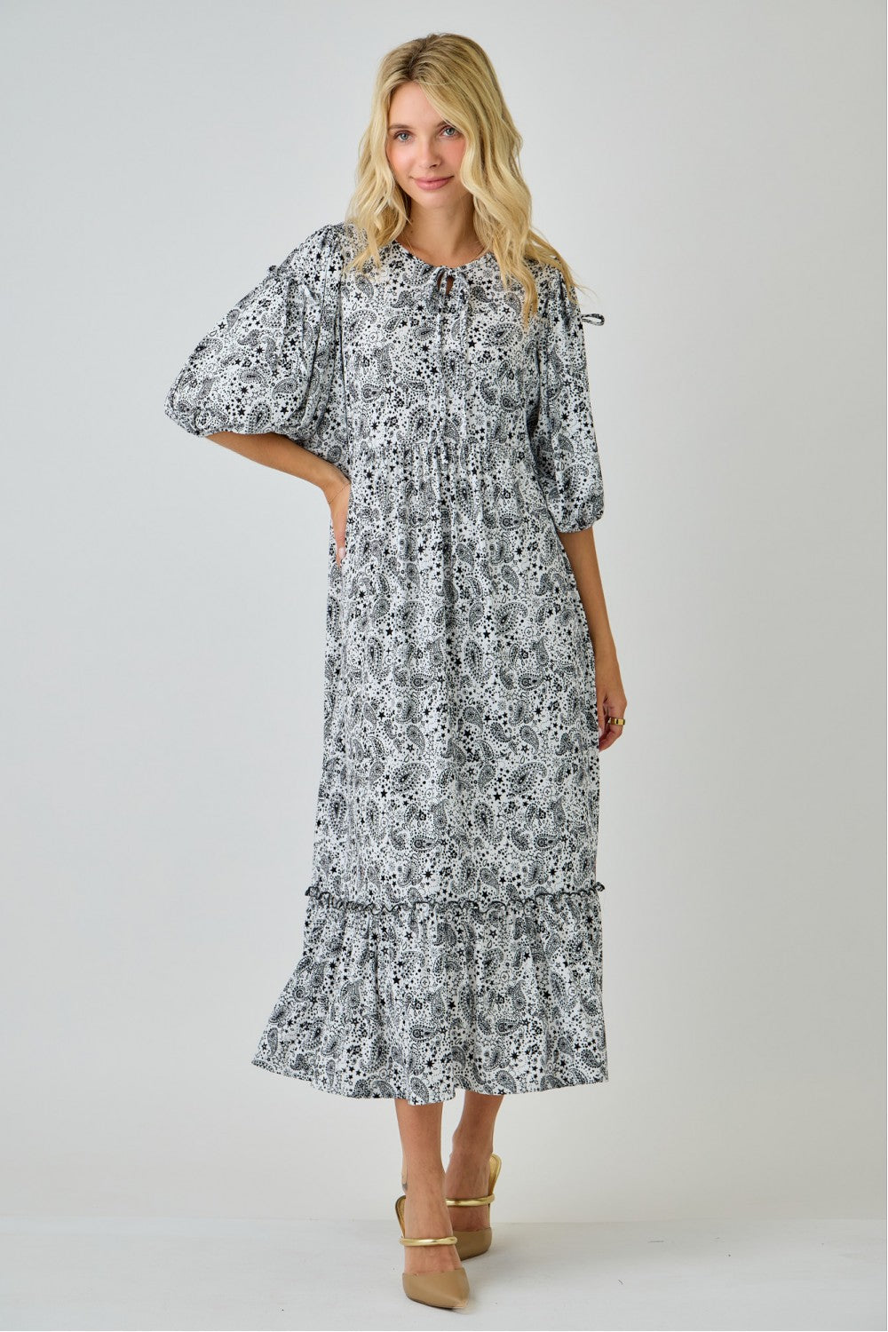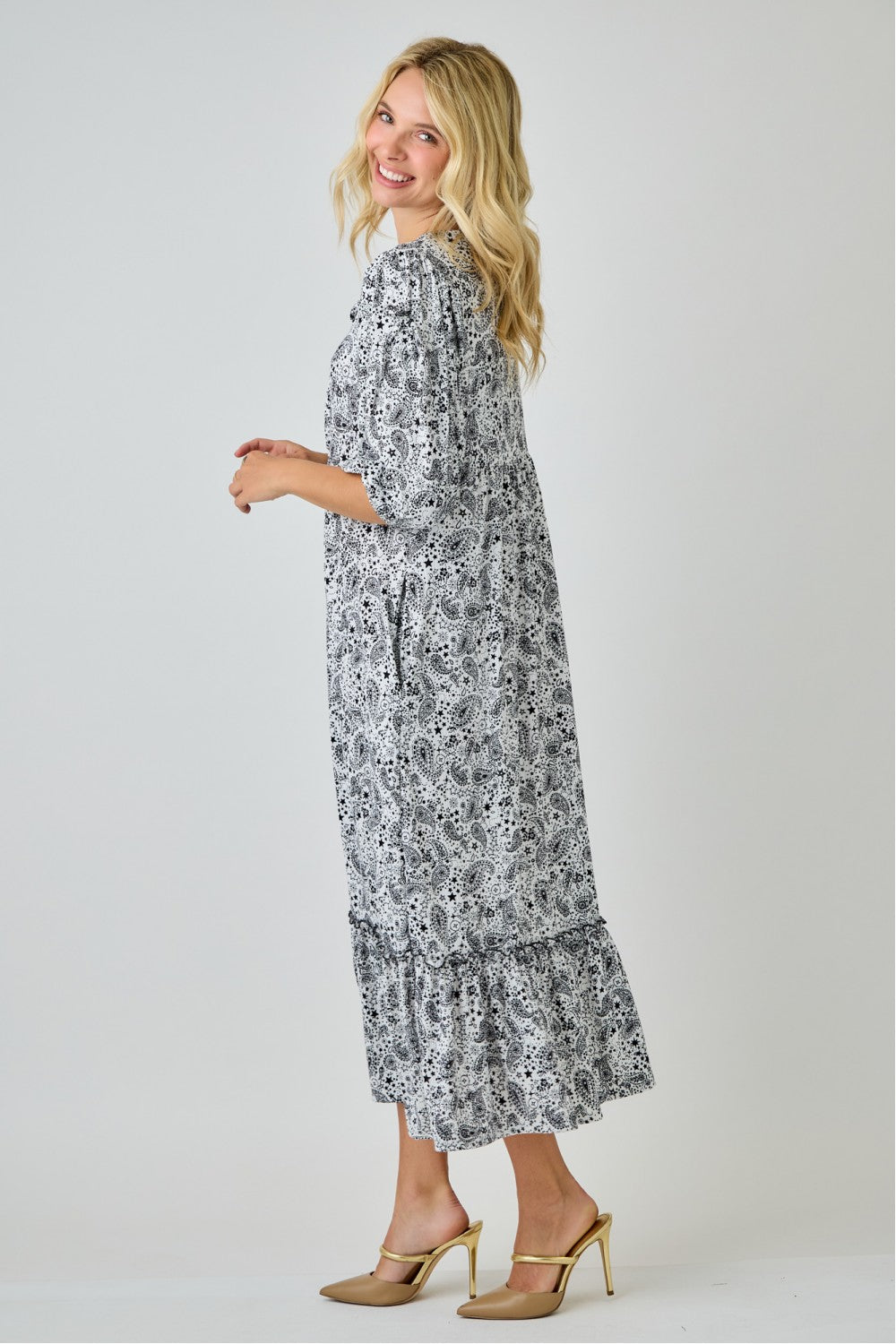 Sweet Dreams Dress ~ Ivory/Black Paisley