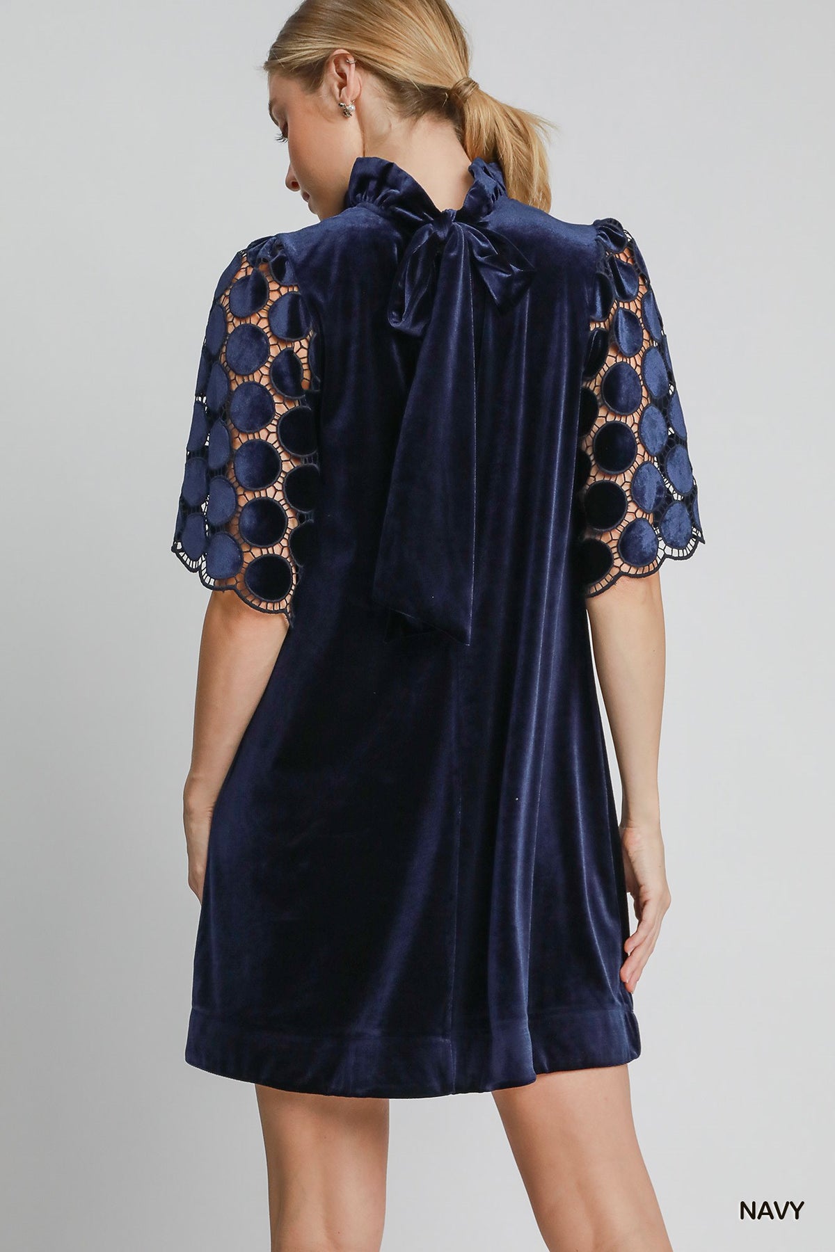 Umgee ~ Navy Velvet Polka Dot Lace Sleeve Tunic/Dress