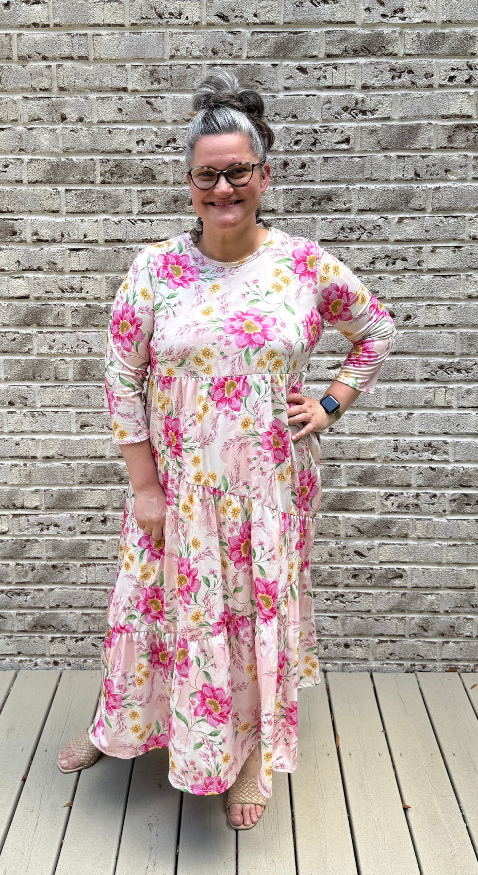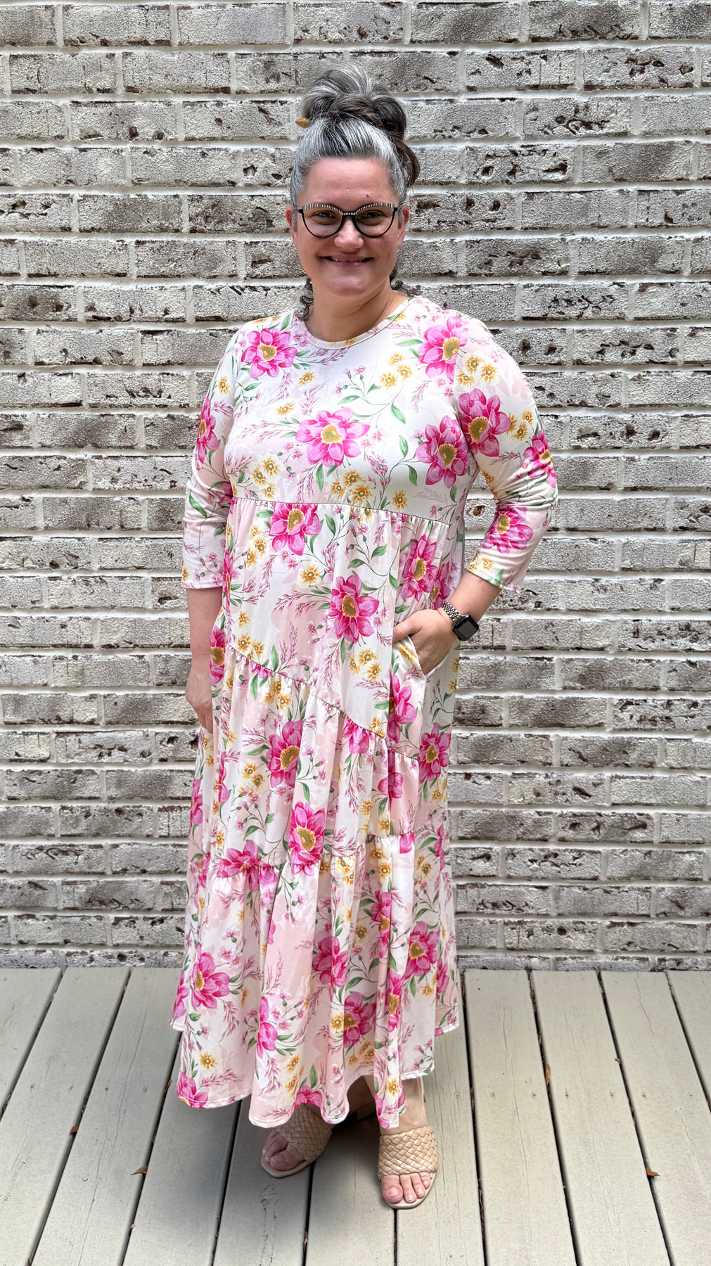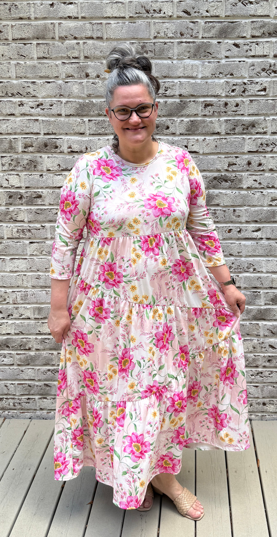 A classic asymmetrical tiered dress featuring, a round neckline, 3/4 sleeves, and hidden side pockets. This dress is made from the softest polyester/spandex material. Its perfect for school, work, church, vacation, the beach, date night, shopping, and a day party. You can wear this dress all summer long  dress it up or down